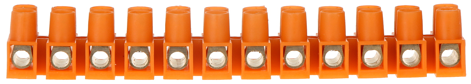 Number of terminal pairs: 12 ; Connector type: terminals ; Nominal voltage: 400 V ; Rated current: 76 A ; Wire gauge: 6 ... 16 mm² - Wire 6 ... 10 mm² - Stranded wire ; Color: Orange ;