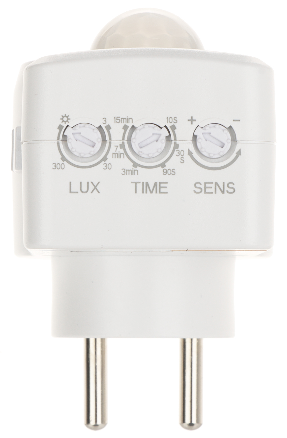 Rated voltage: 230 V ; Maximal load: 1200 W, 300 W @ LED ; Detection angle: 120 ° ; Detection range adjustment: 2 m ... 9 m ; Light intensity adjustment range: < 3 Lux ... 2000 Lux ; Lighting time adjustment range: 10 s ... 7 minutes ;