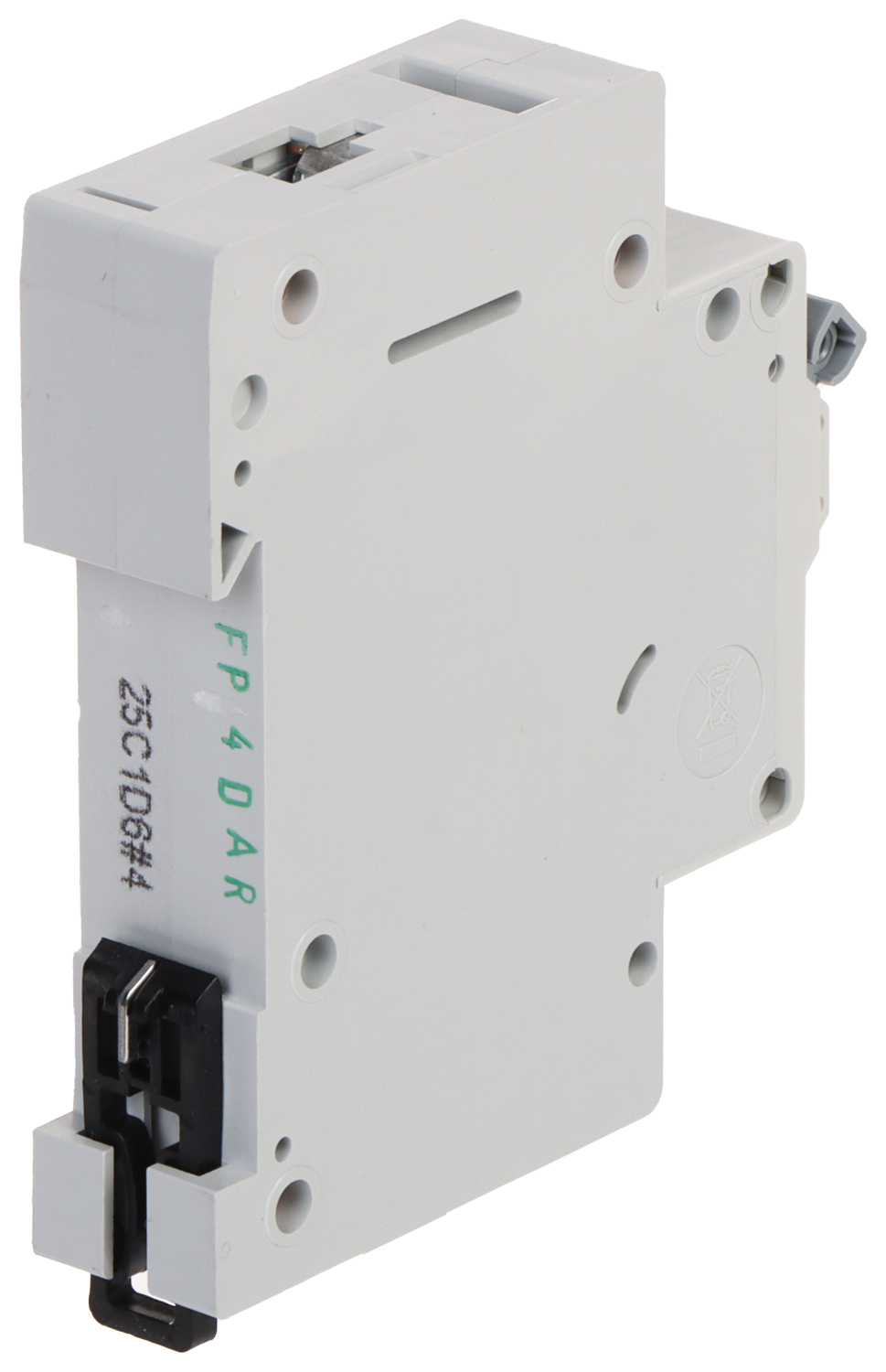 Device type: Circuit Breaker, One-phase ; Rated current: 25 A ; Number of poles: ; Tripping curves: C type ; Breaking capacity: 6000 A ; Connectors type: screw terminals ; Wire gauge: 1 mm² - 25 mm² ; Housing: DIN, TS-35 rail mounting ; Width in 17.5 mm modules: ;