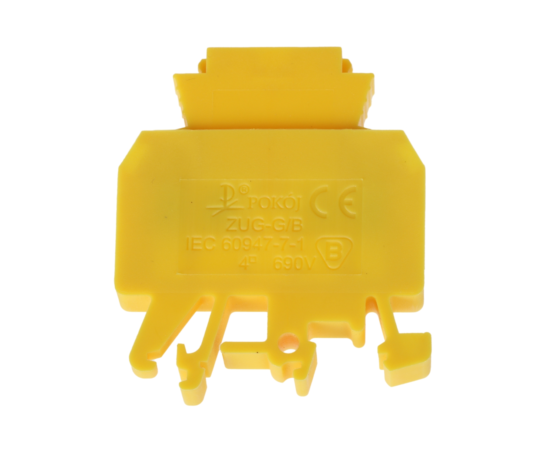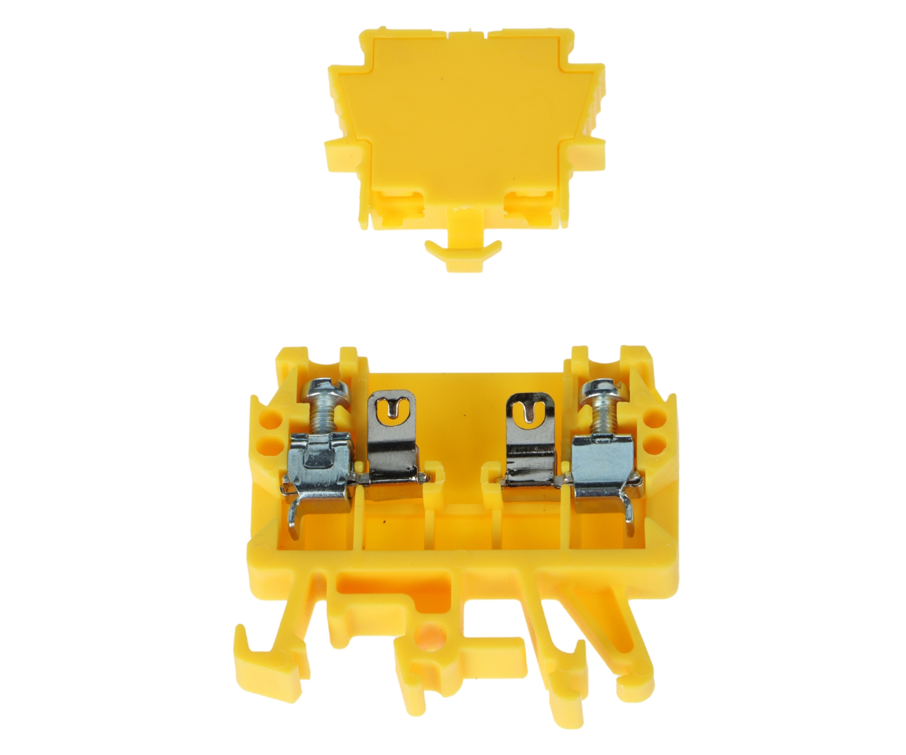 Rated current: 6.3 A ; Rated voltage: 690 V ; Number of terminal pairs: ; Number of terminals: 2 x 4 mm² (screw terminals) ; Color: Yellow ; Dimensions: 60 x 43 x 10 mm ;