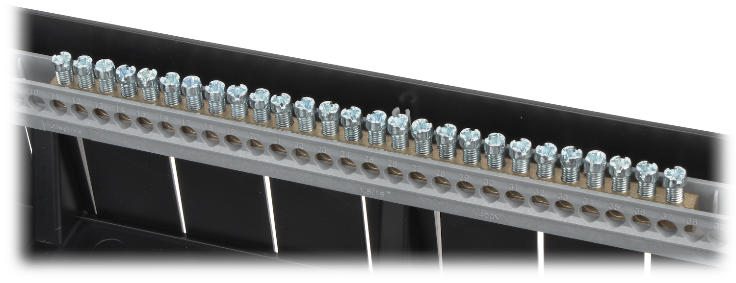 Number of mounted modules: 18 x 2 rows ; Spacing between TH 35 rails: 150 mm ; Transparent door; Main features: Max. current : 125 A ; "Index of Protection": IP40 ; IK rating: IK07 ; Dimensions: 436 x 385 x 105 mm, 420 x 370 x 85 mm - flush-mounting box ;