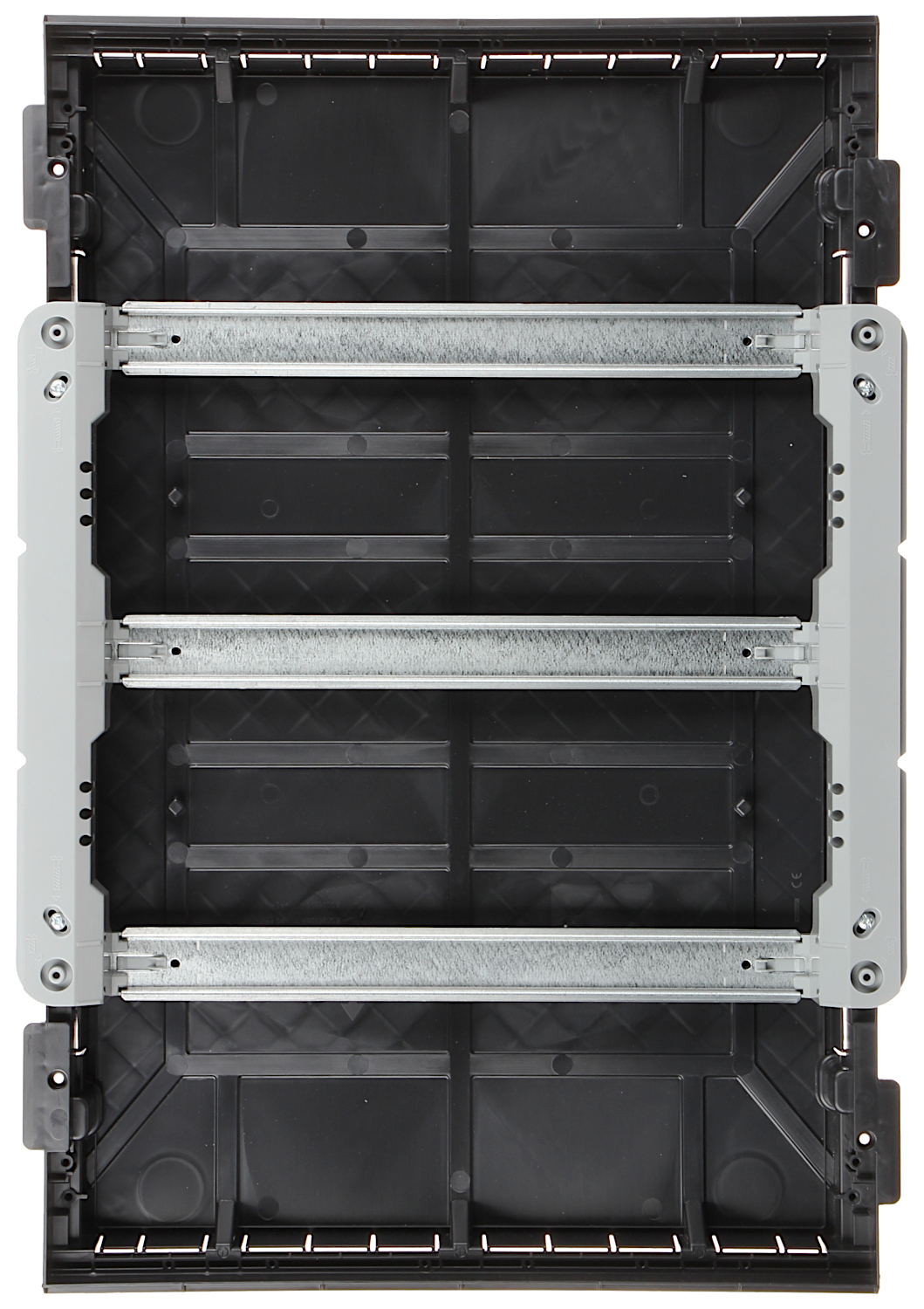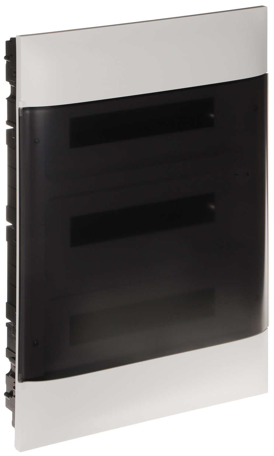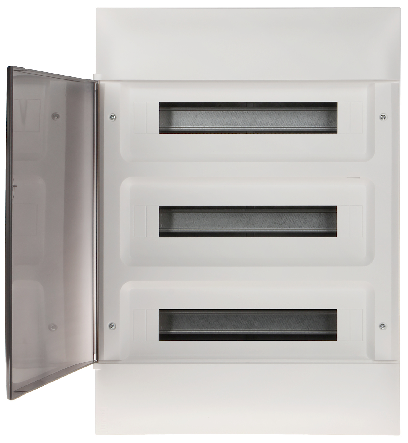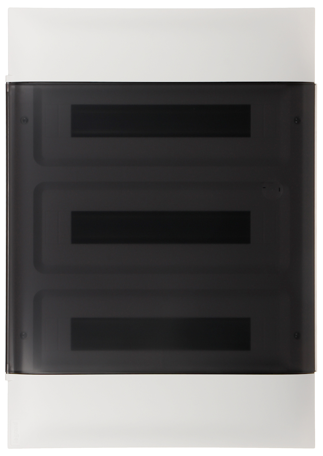 Number of mounted modules: 18 x 3 rows ; Spacing between TH 35 rails: 150 mm ; Transparent door; Main features: Max. current : 125 A ; "Index of Protection": IP40 ; IK rating: IK07 ; Dimensions: 430 x 615 x 105 mm, 420 x 535 x 85 mm - flush-mounting box ;