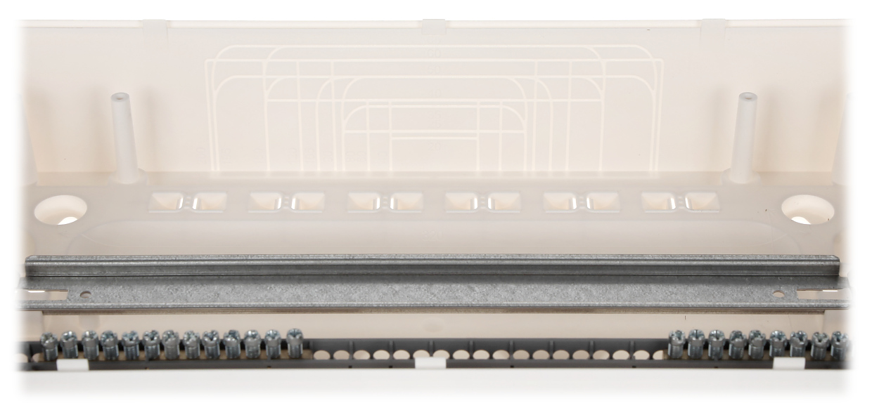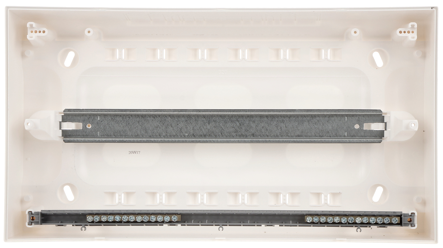 Number of mounted modules: 18 x 1 row ; "Index of Protection": IP40 ; IK rating: IK07 ; Dimensions: 436 x 236 x 107 mm ;
