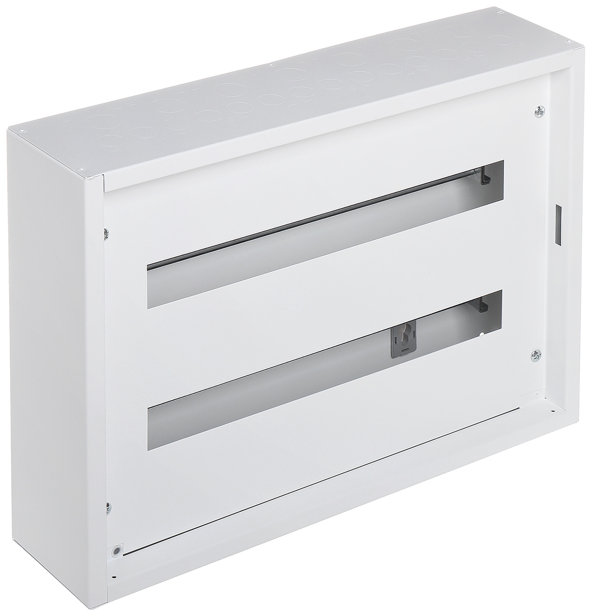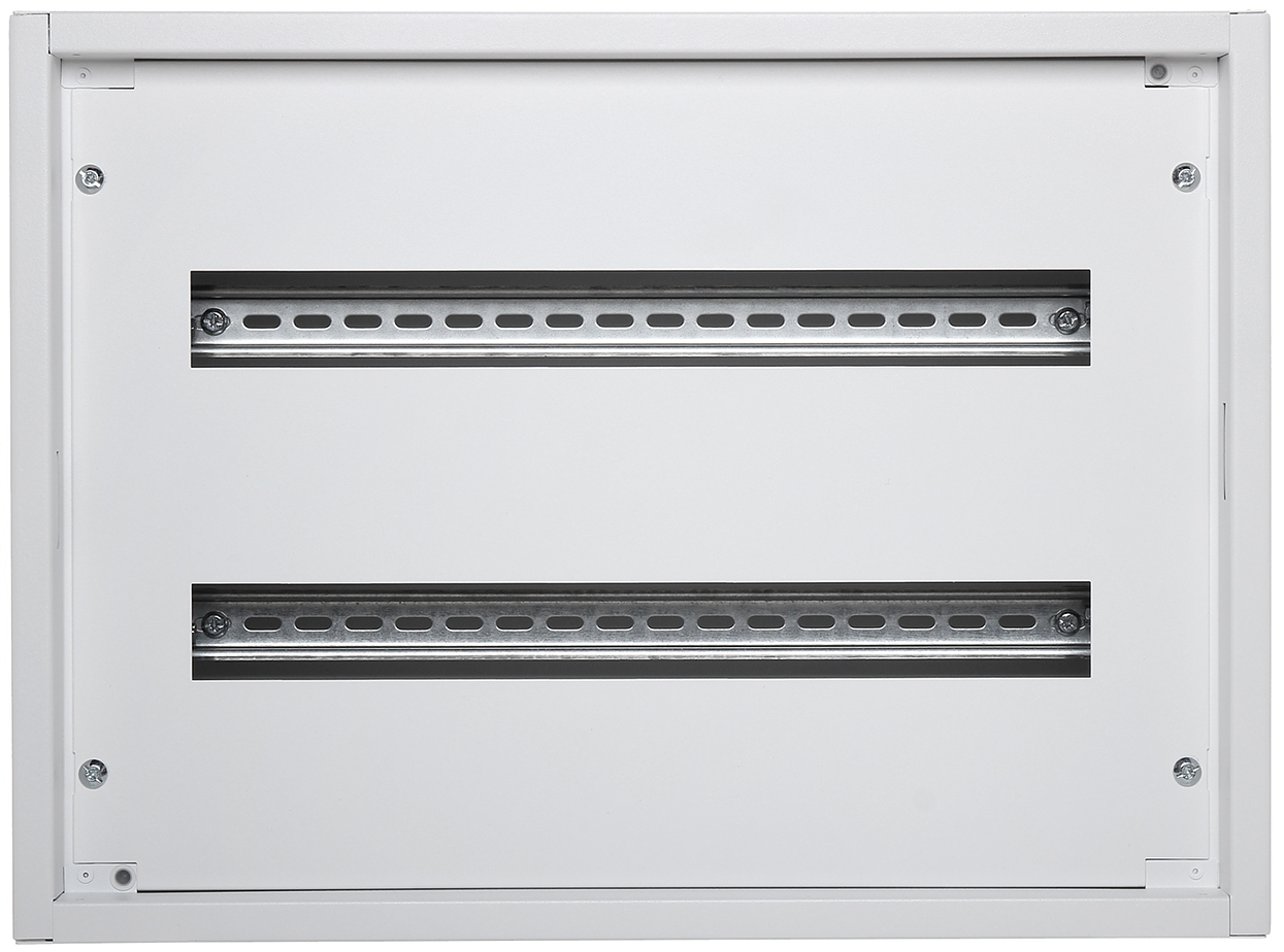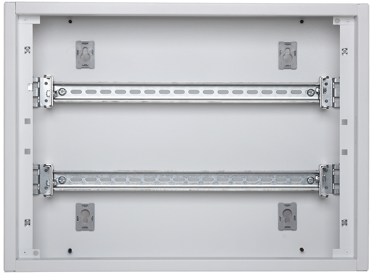Number of mounted modules: 24 x 2 rows ; Spacing between TH 35 rails: 150 mm ; Main features: Max. current : 160 A ; "Index of Protection": IP30 (without door) IP40 (with door) ; IK rating: IK04 (without door) IK07 (with door) ; Dimensions: 595 x 440 x 135 mm ;