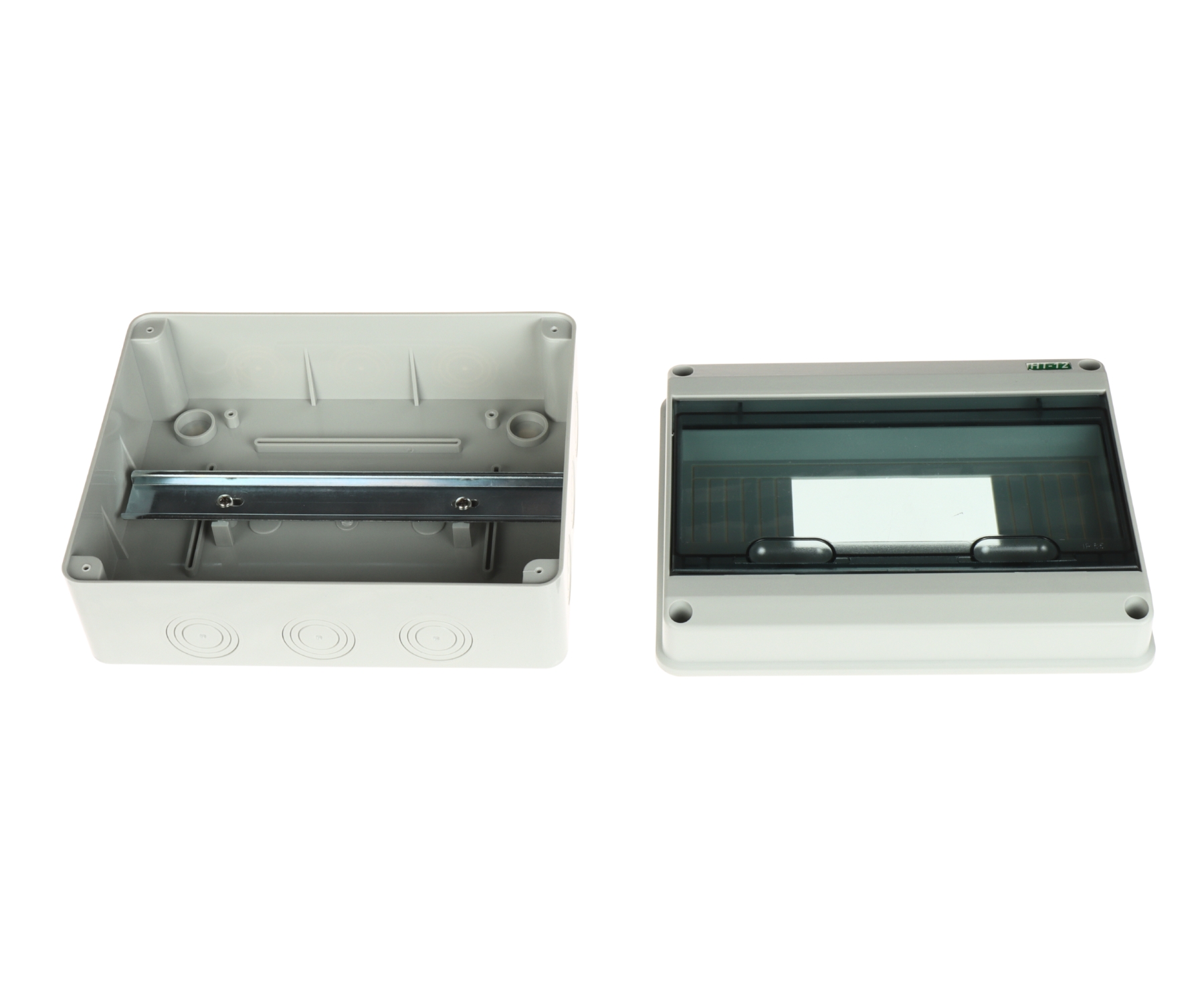 Number of mounted modules: max. 12 x 1 row ; Transparent door; "Index of Protection": IP65 ; Dimensions: 250 x 193 x 105 mm ;