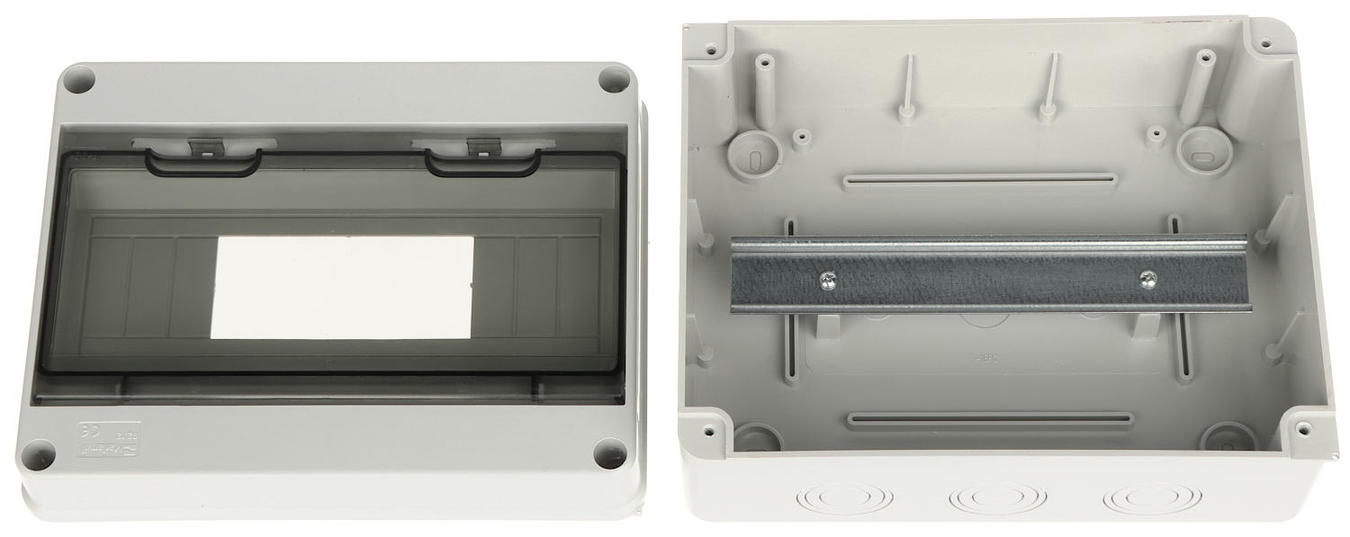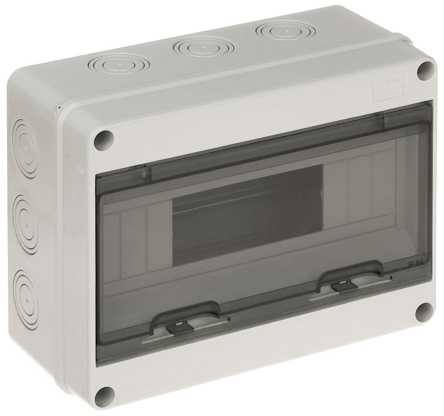 Number of mounted modules: 6 ... 12 x 1 row ; Transparent door; "Index of Protection": IP65 ; Dimensions: 253 x 196 x 110 mm ;
