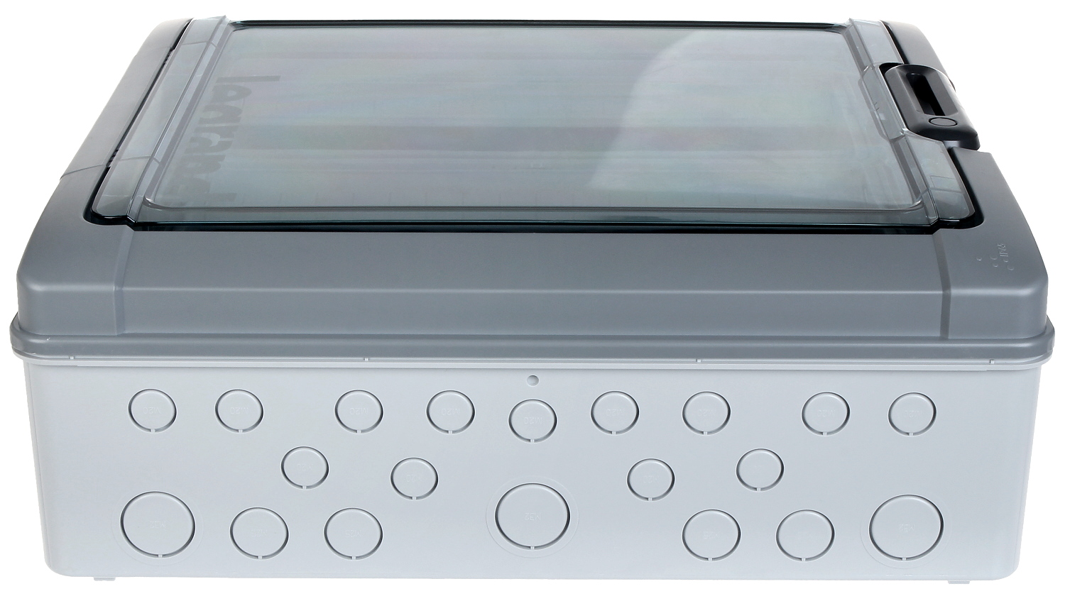 Number of mounted modules: 18 x 2 rows ; Spacing between TH 35 rails: 150 mm ; Transparent door; Main features: Max. current : 90 A ; "Index of Protection": IP65 ; IK rating: IK09 ; Dimensions: 448 x 432 x 161 mm ;