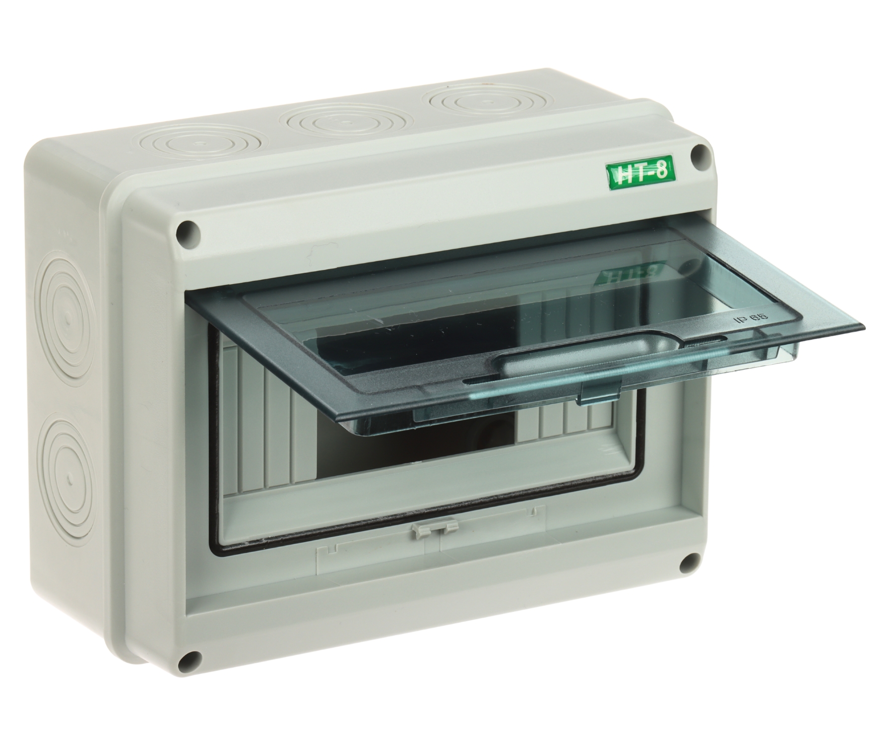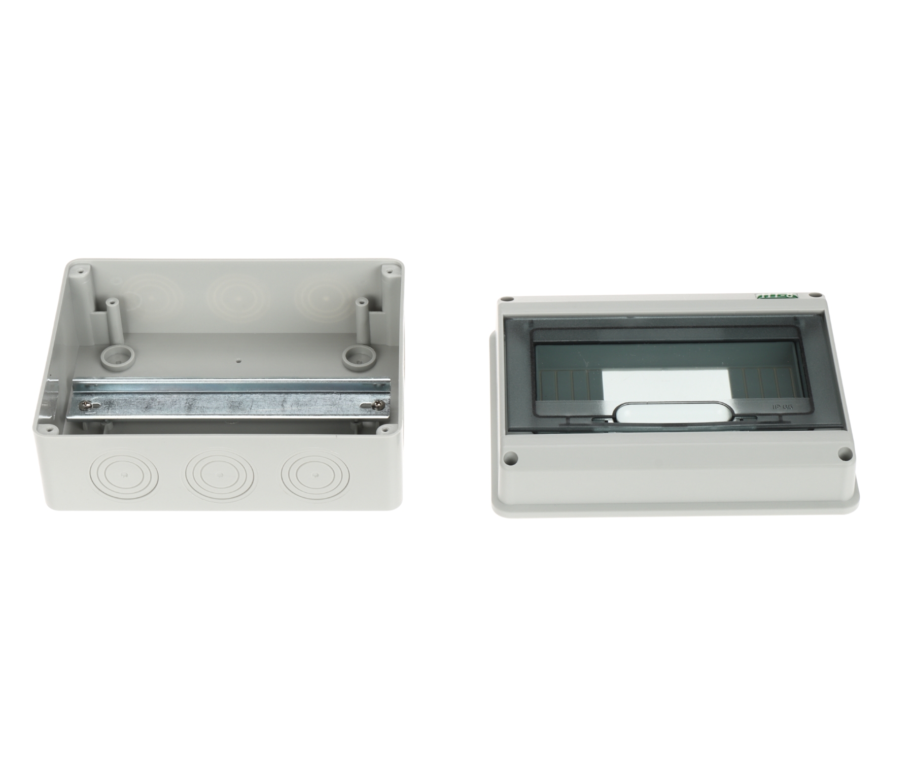 Number of mounted modules: max. 8 x 1 row ; Transparent door; "Index of Protection": IP65 ; Dimensions: 197 x 150 x 90 mm ;