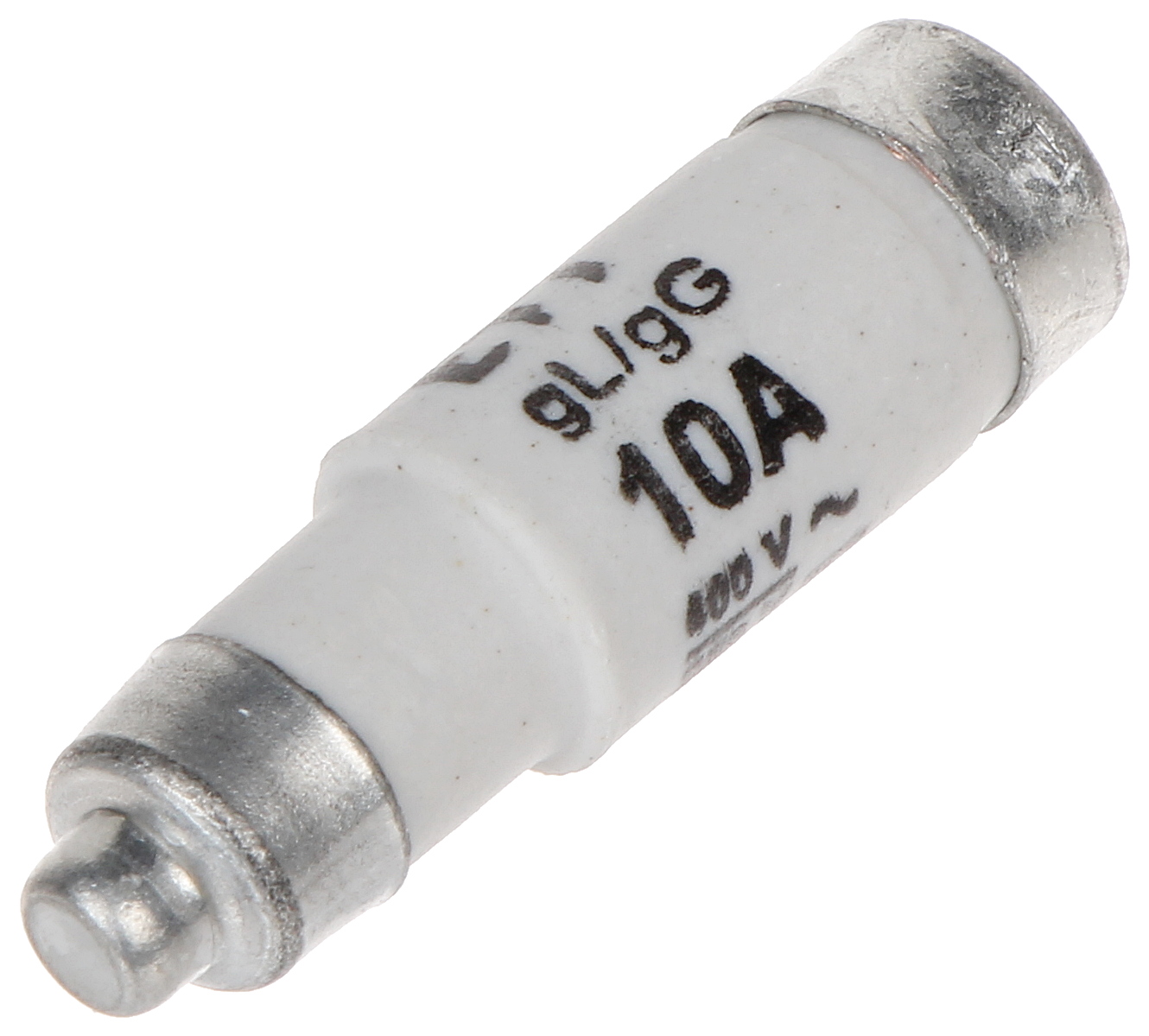 Rated current: 10 A ; Rated voltage: 250 V DC, 400 V AC ; Fusing characteristics: gL/gG ; Fuse base: E14 ; Type: D0 ; Size: D01 ; Breaking capacity: 50 kA AC, 8 kA DC ; Housing: Ceramic ;
