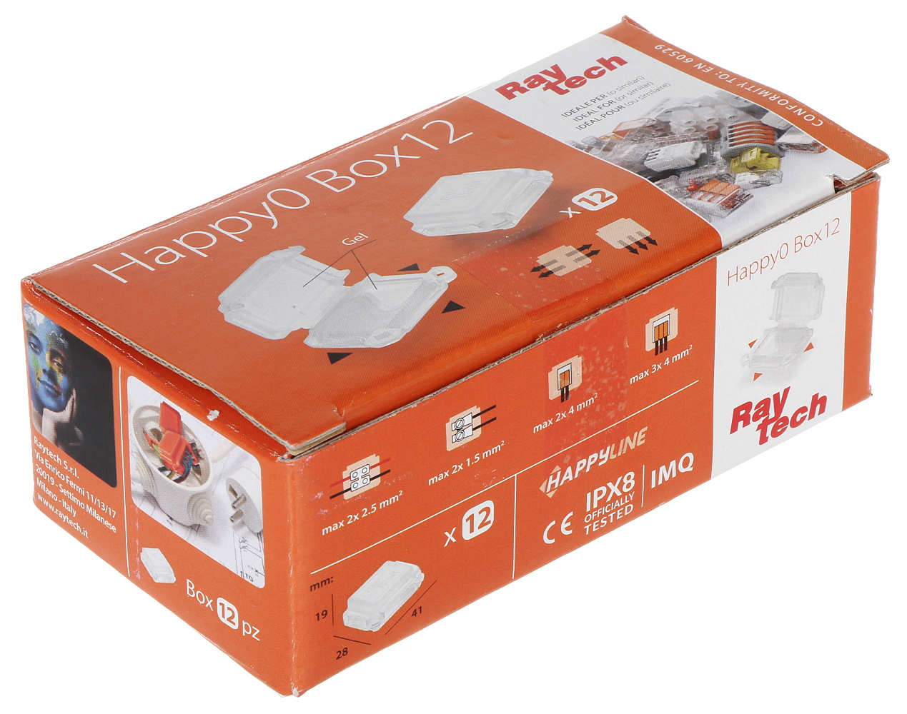 Universal mounting box filled with gel, allowing the connection of electrical, telephone, signal, antenna cables, etc. according to IP68 Protection Class; In package: 12 pcs The price for package ; Voltage insulation: 1 kV ; "Index of Protection": IP68 ; Internal dimensions: 27 x 20 x 15 mm ;