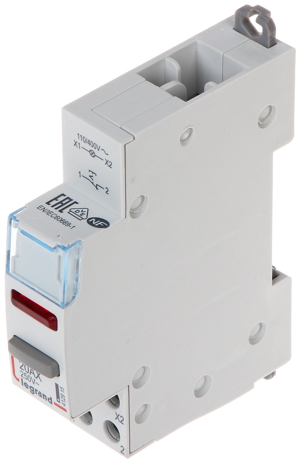 LED indicator: Red 110 / 400 V AC ; Rated current: 20 A ; Rated voltage: 250 V AC ; Category of use: AC12 ; Connectors type: screw terminals ; Housing: DIN, TS-35 rail mounting ; Width in 17.5 mm modules: ;