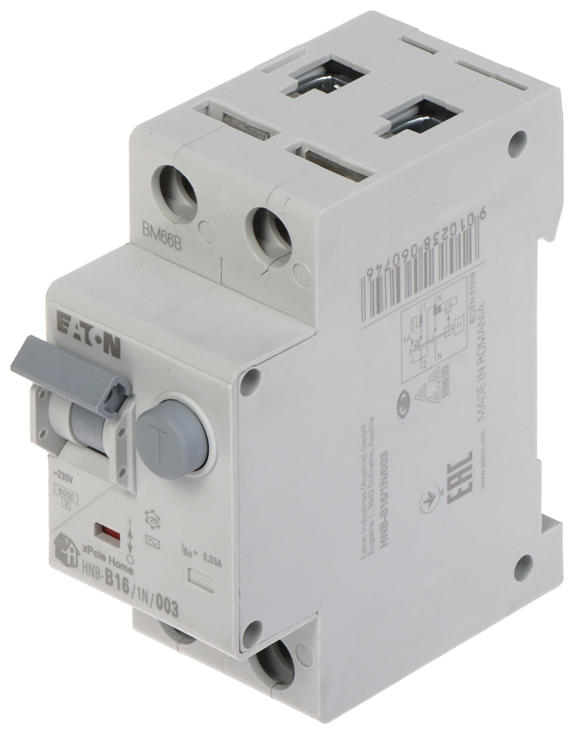 RESIDUAL CURRENT CIRCUIT BREAKER HNB-B16/1N/003 ONE-PHASE, AC TYPE 30 mA 16 A EATON