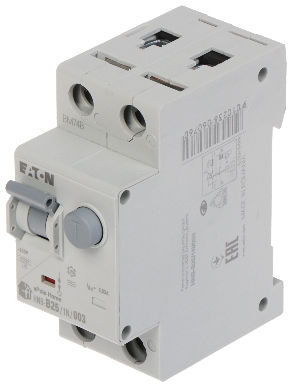 RESIDUAL CURRENT CIRCUIT BREAKER HNB-B25/1N/003 ONE-PHASE, AC TYPE 30 mA 25 A EATON