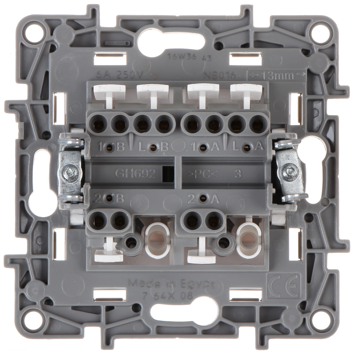 ДВОЙНАЯ КНОПКА LE-764508 из серии Niloe от LEGRAND — это высококачественный электрический переключатель, предназначенный для надежной работы в жилых и коммерческих помещениях. Этот моностабильный двойной кнопочный звонковый переключатель работает при 230 В / 50 Гц с номинальным током 6 А. Оснащен автоматическими пружинными клеммами для удобства подключения, совместим с электрическими кабелями до 2 x 2,5 мм². Устройство поддерживает монтаж как на защелках, так и на винтах, обеспечивая универсальные варианты установки.