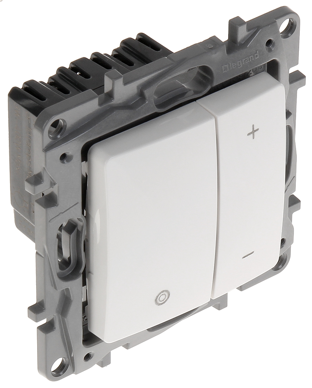 УНИВЕРСАЛЬНЫЙ ДИММЕР LE-665114 Niloe 400 Вт от LEGRAND — универсальный диммер для освещения, предназначенный для широкого спектра типов ламп. Устройство оснащено автоматическим определением типа подключенной лампы, что облегчает использование с лампами накаливания, галогенными, ELV галогенными с трансформаторами, линейными люминесцентными лампами, диммируемыми компактными люминесцентными лампами и диммируемыми светодиодами. Многофункциональный режим работы позволяет как плавное затемнение, так и переключение на предустановленные уровни освещенности, удовлетворяя различные потребности в управлении освещением.
