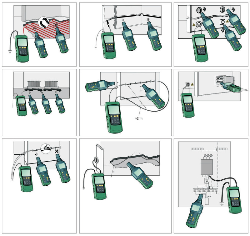 • Detection of the cable in the wall and underground at depth up to 2m,