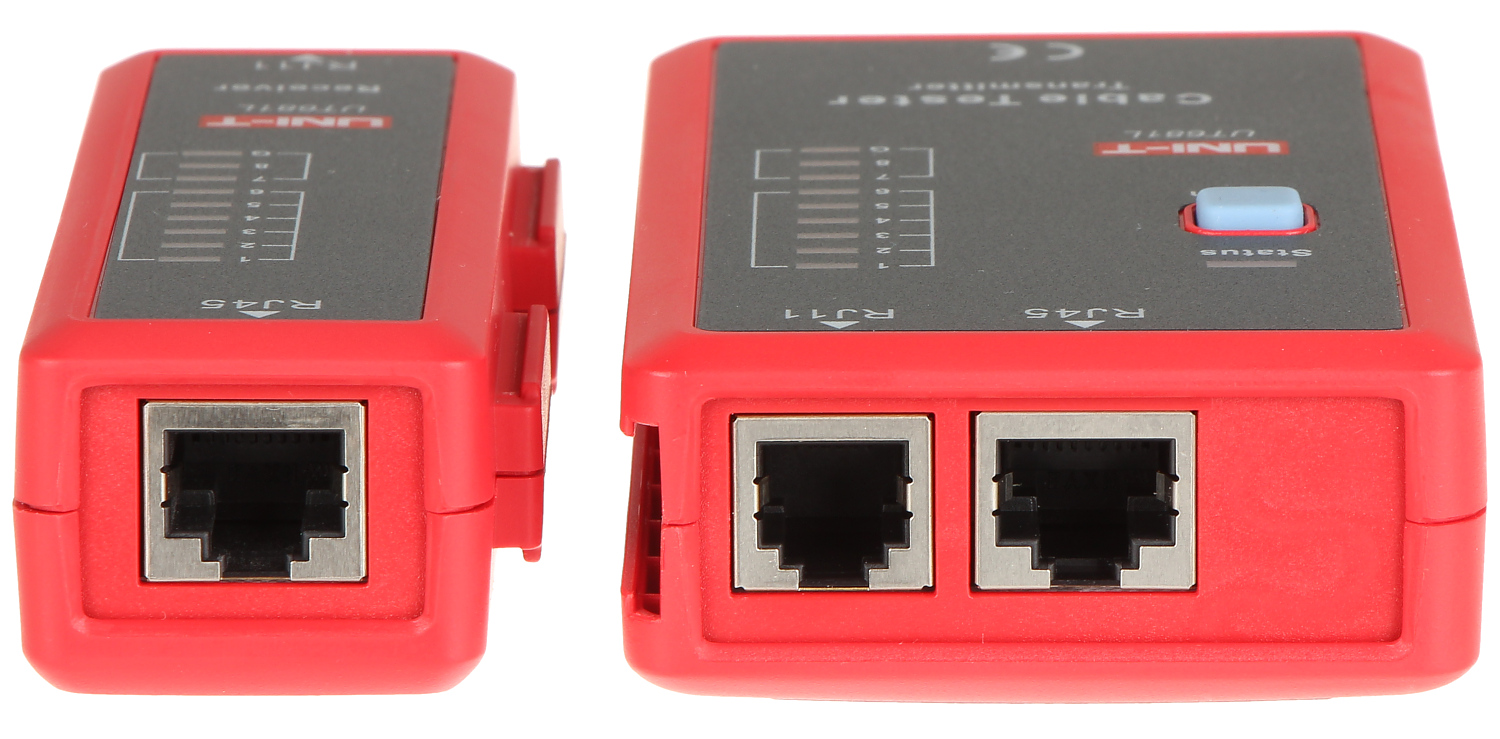 The UT-681L tester is designed to test the correctness of the cable terminating, wires sequence in RJ-45 and RJ-11 plug; Tested cables: UTP, FTP, YTKSY - RJ45 (8P8C), RJ11 (6P4C) ;