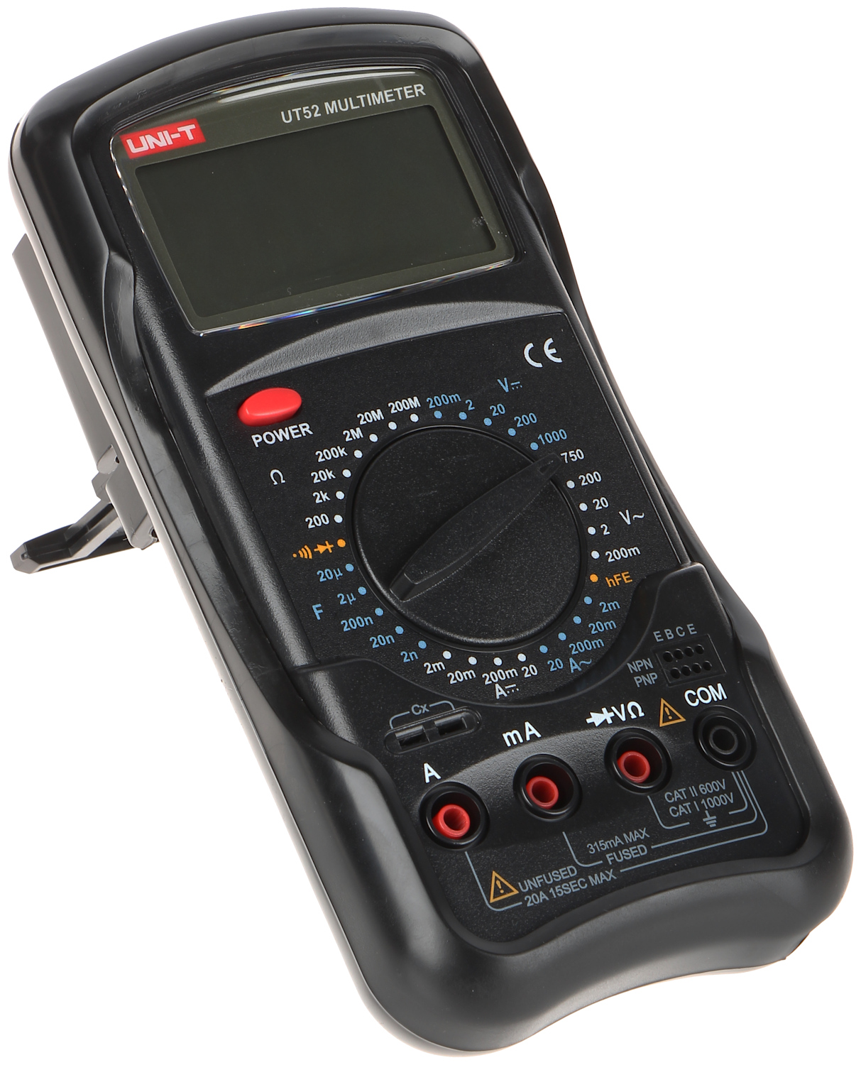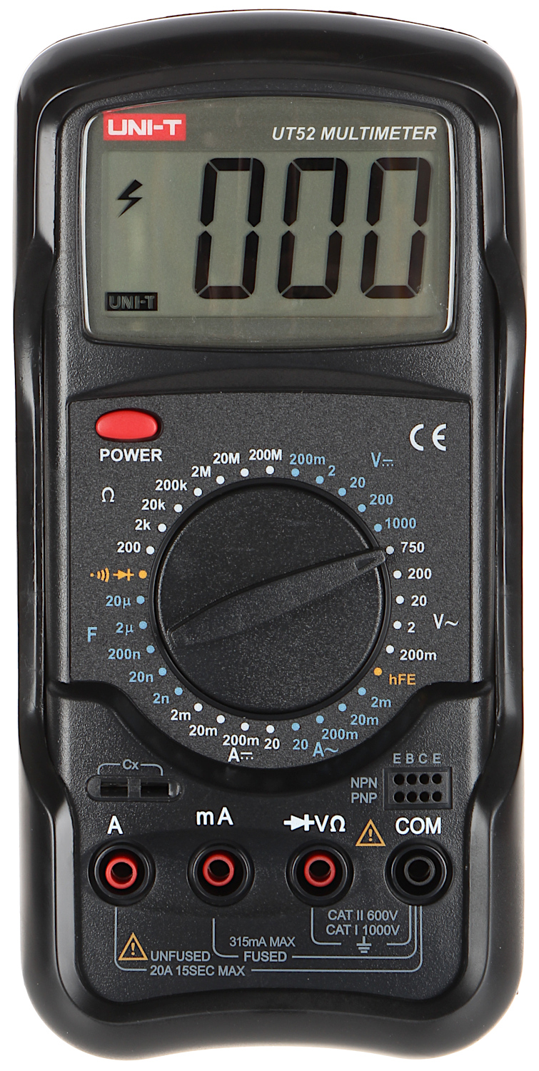 The UT-52 is a universal digital meter used to measure: voltage, current, resistance, capacitance, hFE, and checking the correct operation of diodes;