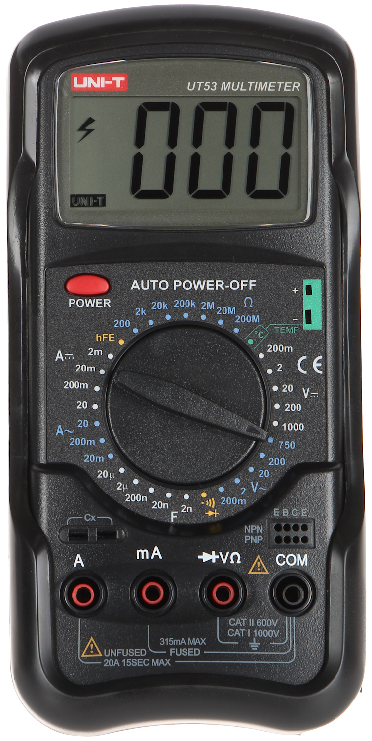 | DC voltage measurement: | 200 mV ± (0.5% + 1) @ 0.1 mV , 2 V ± (0.5% + 1) @ 0.001 V , 20 V ± (0.5% + 1) @ 0.01 V , 200 V ± (0.5% + 1) @ 0.1 V , 1000 V ± (0.8% + 2) @ 1 V |