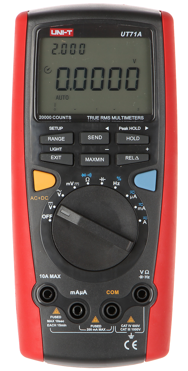 | DC current measurement: | 200 µA ± (0.2% + 20) @ 0.01 µA , 2000 µA ± (0.2% + 20) @ 0.1 µA , 20 mA ± (0.2% + 20) @ 0.001 mA , 200 mA ± (0.2% + 20) @ 0.01 mA , 10 A ± (0.8% + 30) @ 0.001 mA |