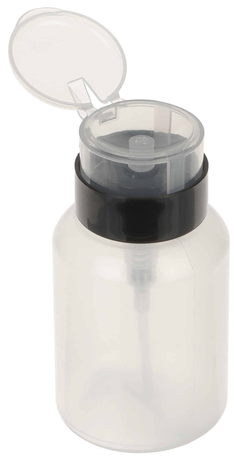 Container for isopropyl alcohol with a practical dispenser;