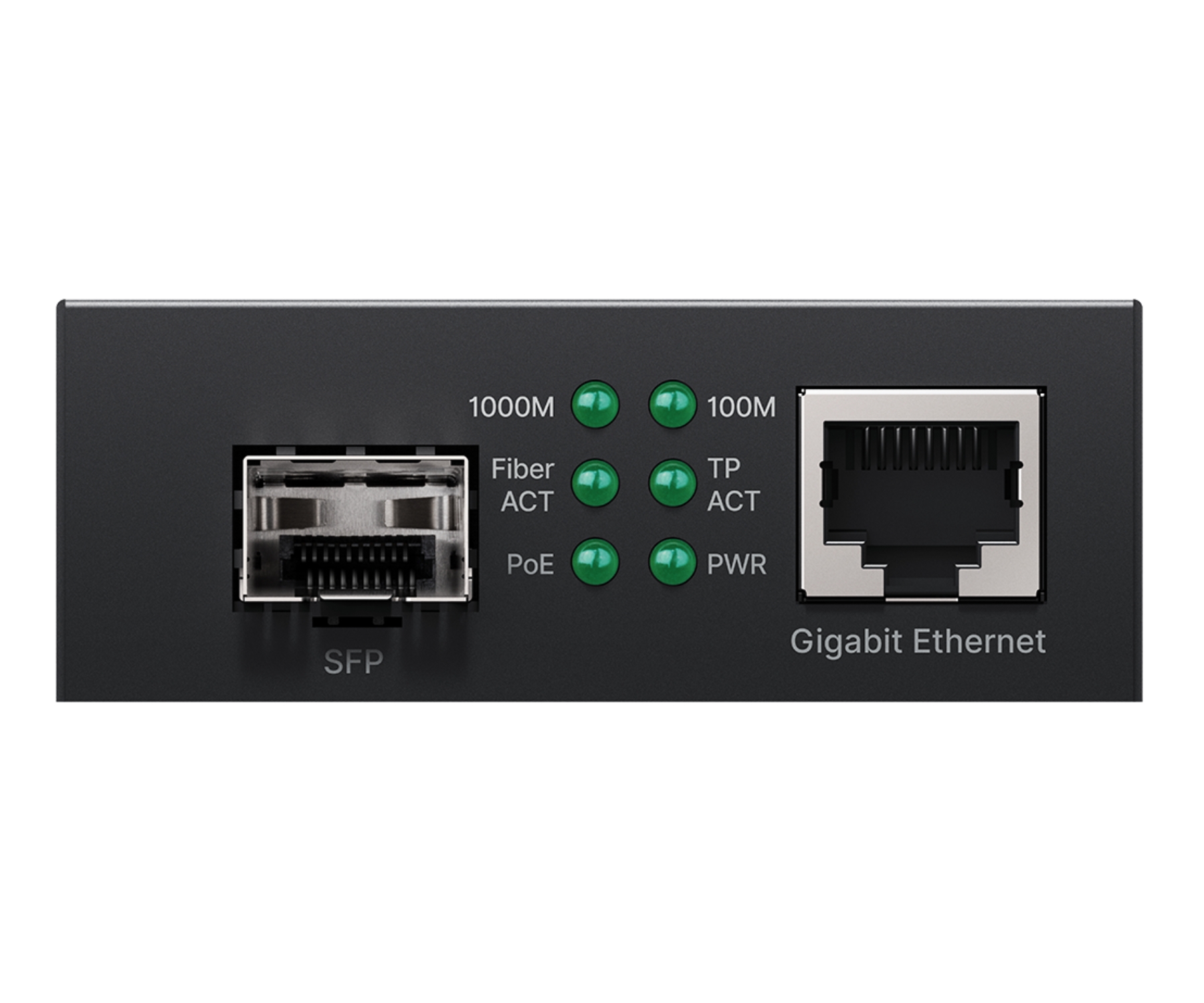 LAN ports: 1 x port SFP, 1 x RJ-45 port ; Transmission speed: 10 / 100 / 1000 Mbps - 1x RJ-45 port, 1000 Mbps - 1 x port SFP ;