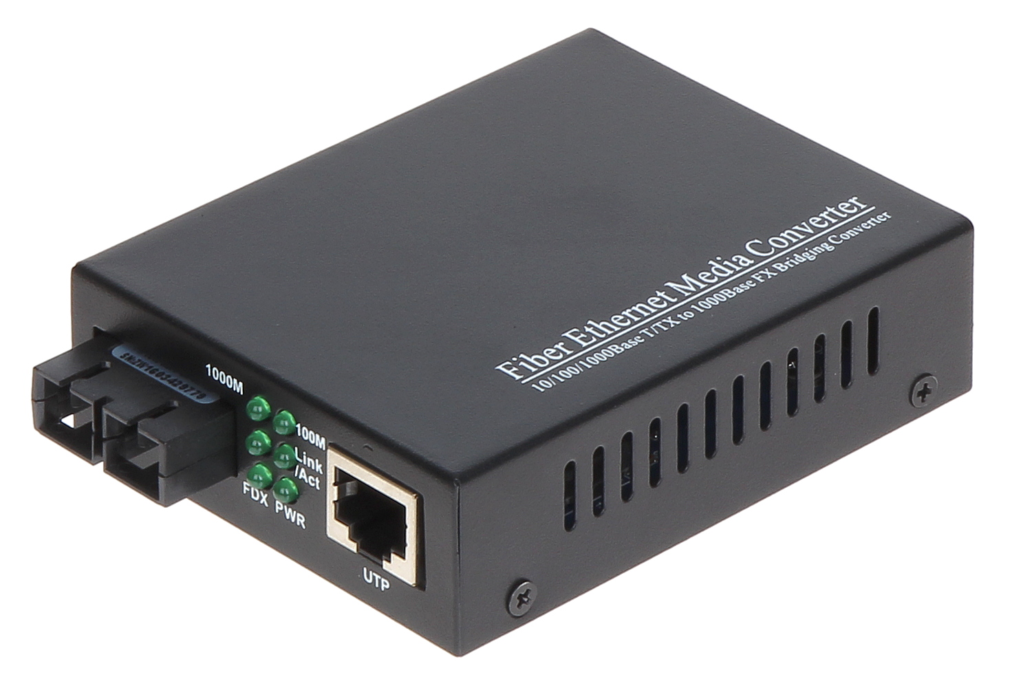Fast Ethernet converter (Gigabit Ethernet) twisted-pair cable <-> single-mode fiber; Optical connector type: 2 pcs SC / PC ; Number of fibers: 2 pcs ; Transmission range: 20 km - Single-mode fiber ; Transmission speed: 10 / 100 / 1000 Mbps ; Optical wavelength: 1310 nm ; Main features: Bi-directional transmission via two fibers ;