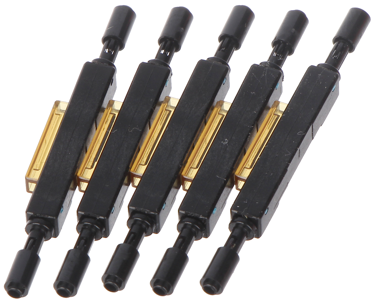 In package: 5 pcs The price for package ; Fiber type: Multi-mode and single-mode ; Cable diameter: 250 µm / 900 µm ; Connector insertion loss: 0.1 dB ;