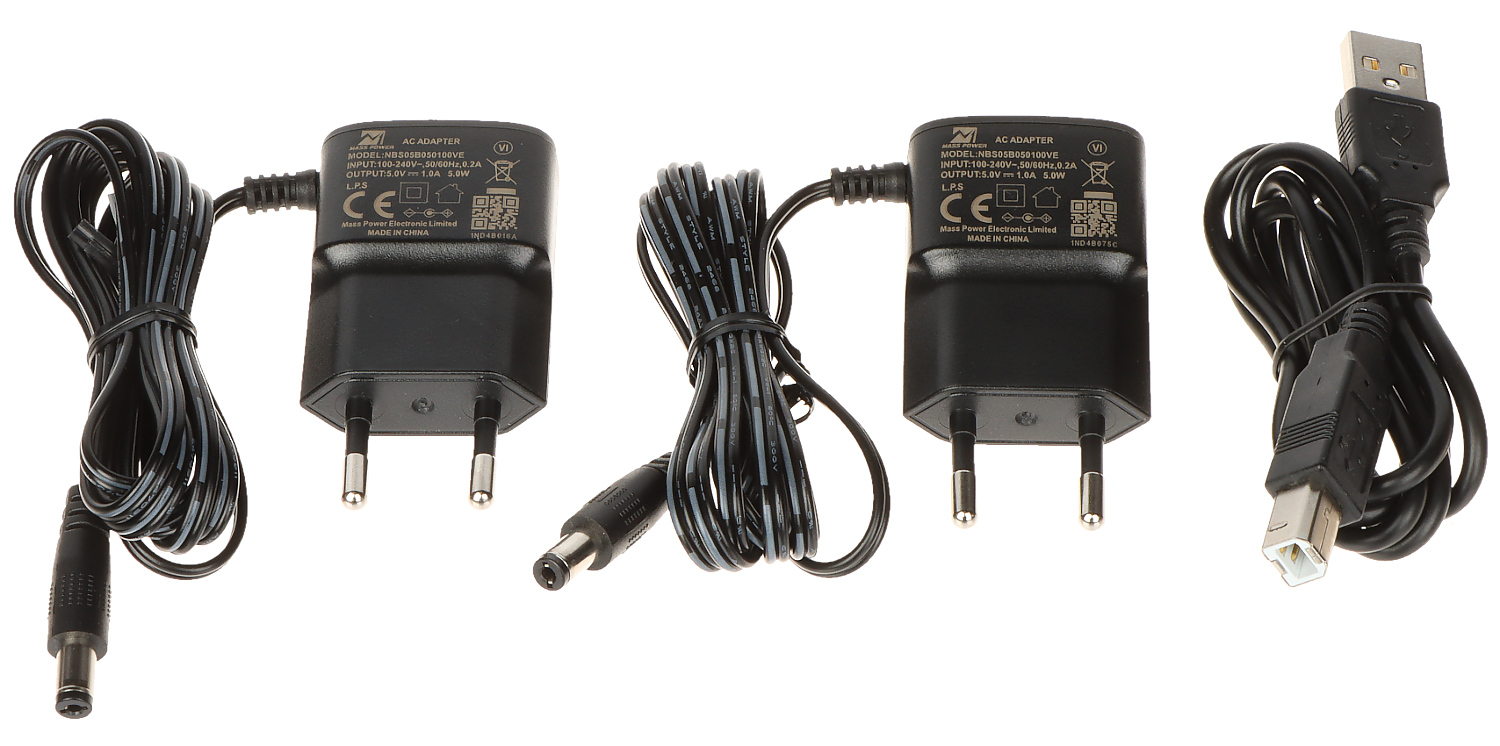 • Transmitter 5 V DC / 1 A (power adapter included)