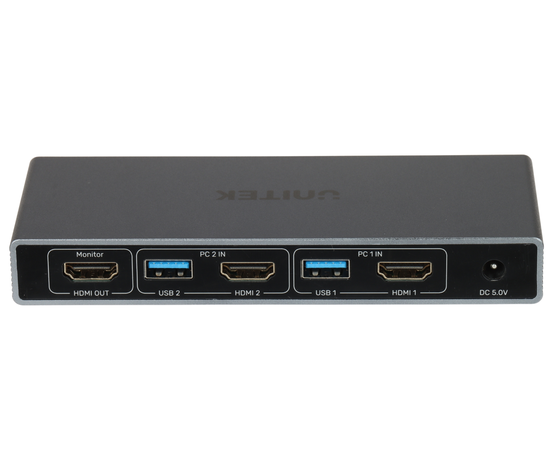Number of HDMI inputs: 2 pcs ; Number of HDMI outputs: 1 pcs ; Number of USB inputs: 2 pcs - USB-A socket ; Number of USB outputs: 4 pcs - USB-A socket ; Power supply: 5 V / 2 A ;