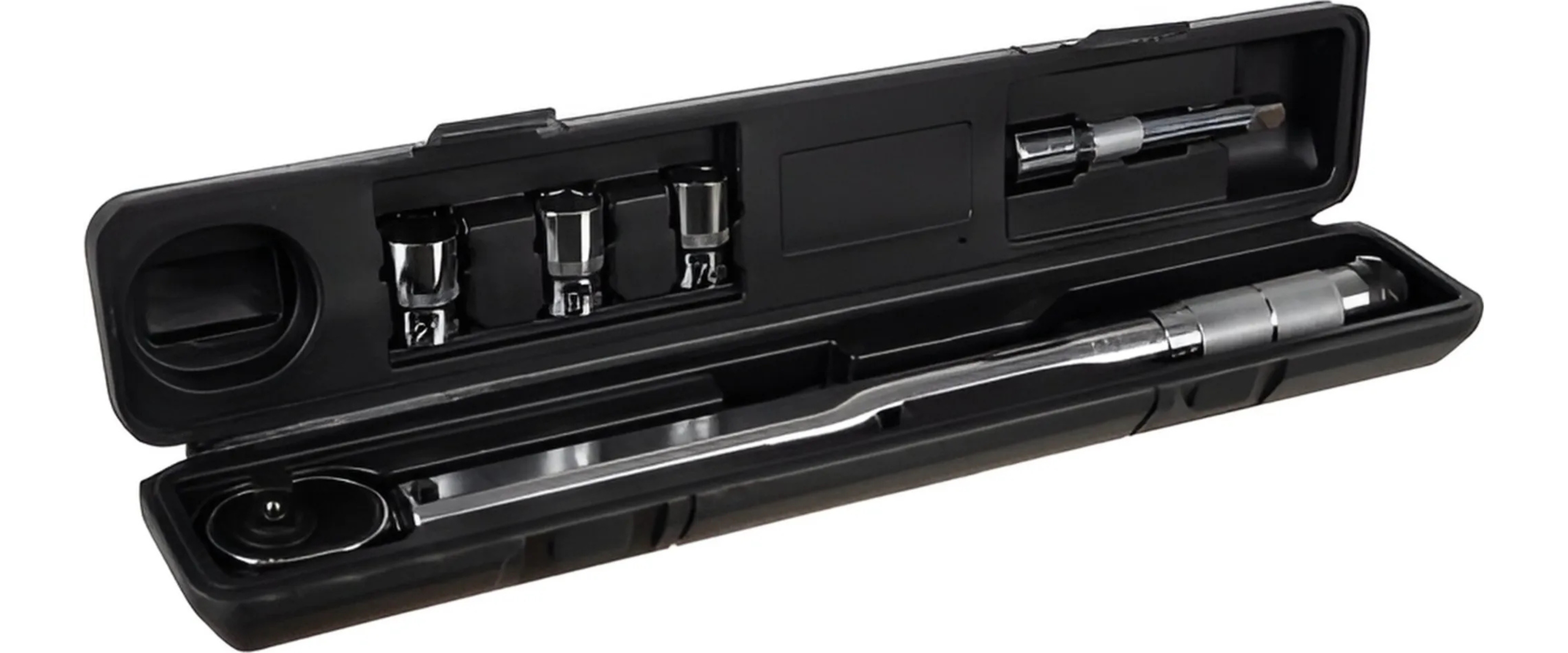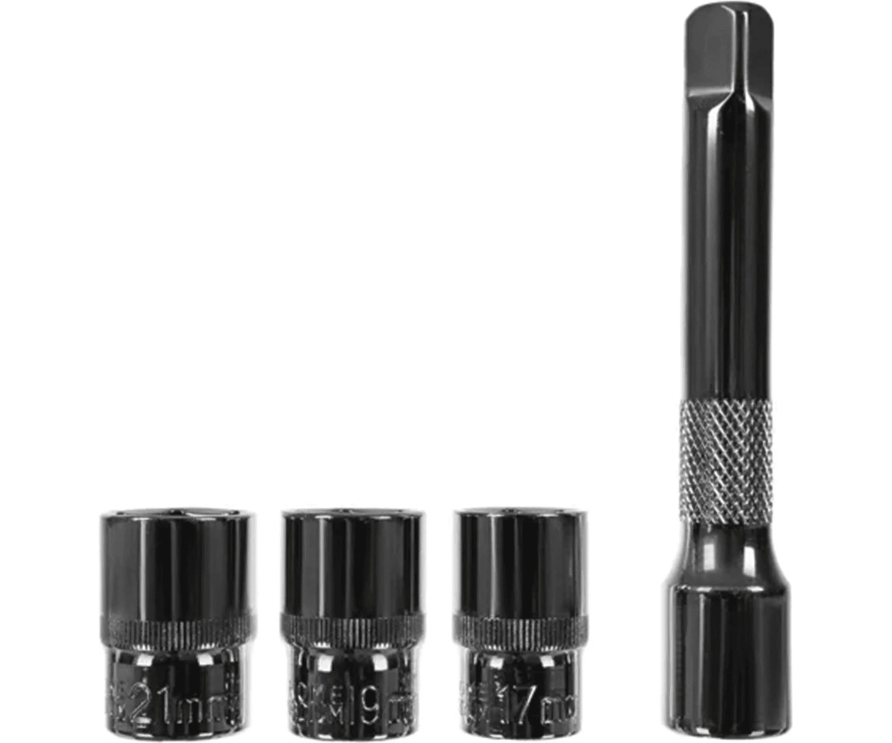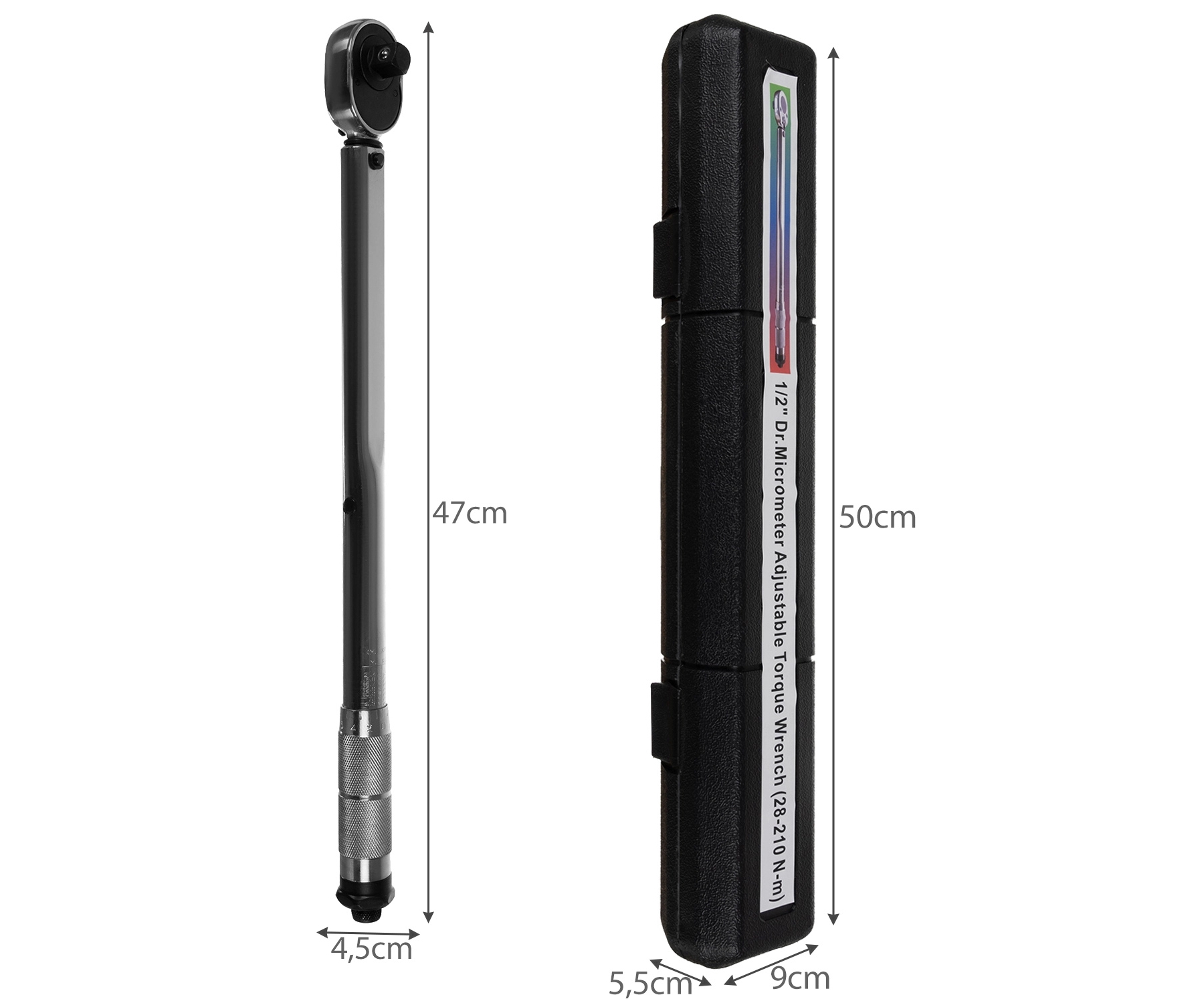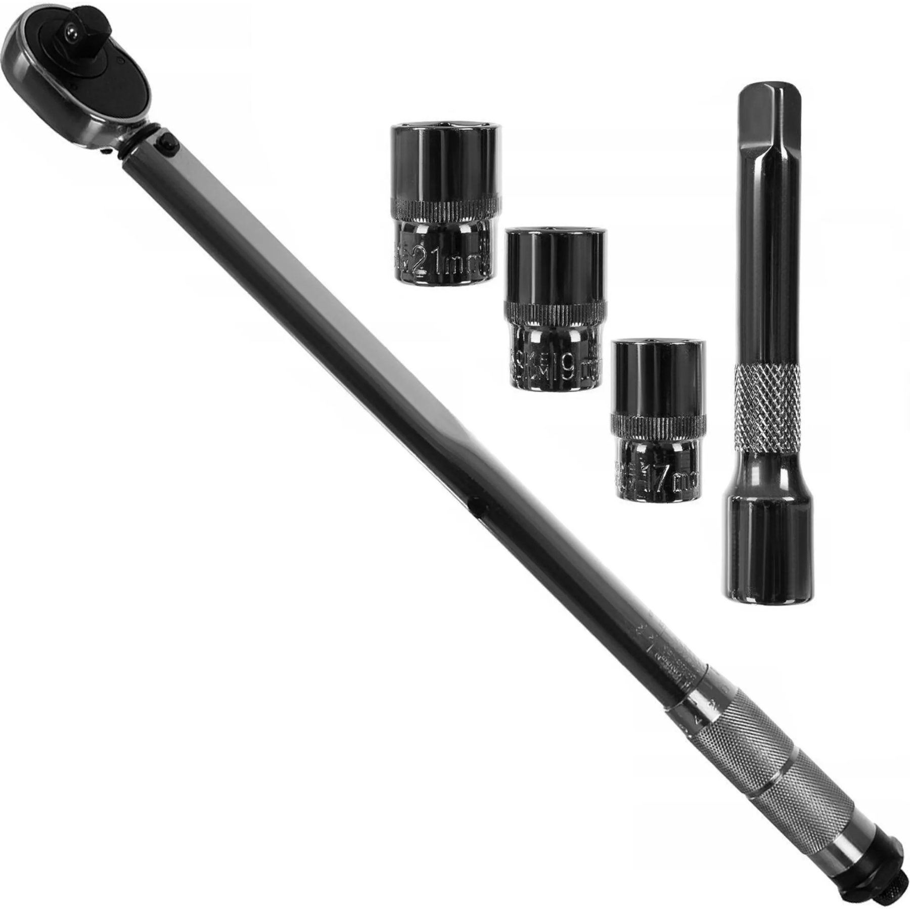 Size: 1/2 " ; Torque: 28 ... 210 Nm ; Length: 470 mm ; The kit includes: sockets : 17, 19, 21 mm ; 1/2 " horizontal extension : 125 mm ; Case ;