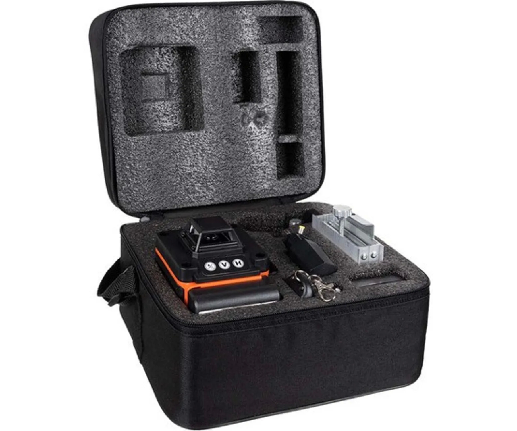 Laser color: Green ; Accuracy: 0.2 mm / 10 m ; Working distance: ≤ 25 m ; Main features: Laser pointer : max. 16 lines - 4 in one plane 360 ° 4D, Self-leveling function, "Index of Protection" : IP54 ;