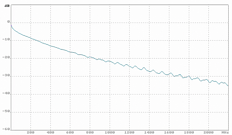 Cable attenuation at 100m section: | 3.6 dB @ 50 MHz 6.2 dB @ 100 MHz 13 dB @ 500 MHz 17.3 dB @ 862 MHz 18.8 dB @ 1000 MHz 23.2 dB @ 1500 MHz 27.9 dB @ 2000 MHz |
