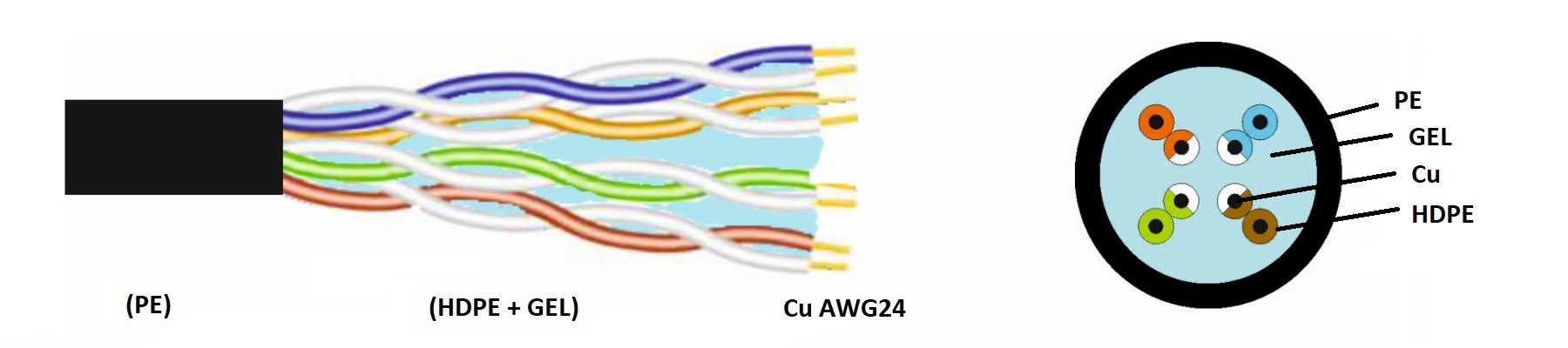 Main features: The core of the cable is filled with gel, which prevents longitudinal water penetration