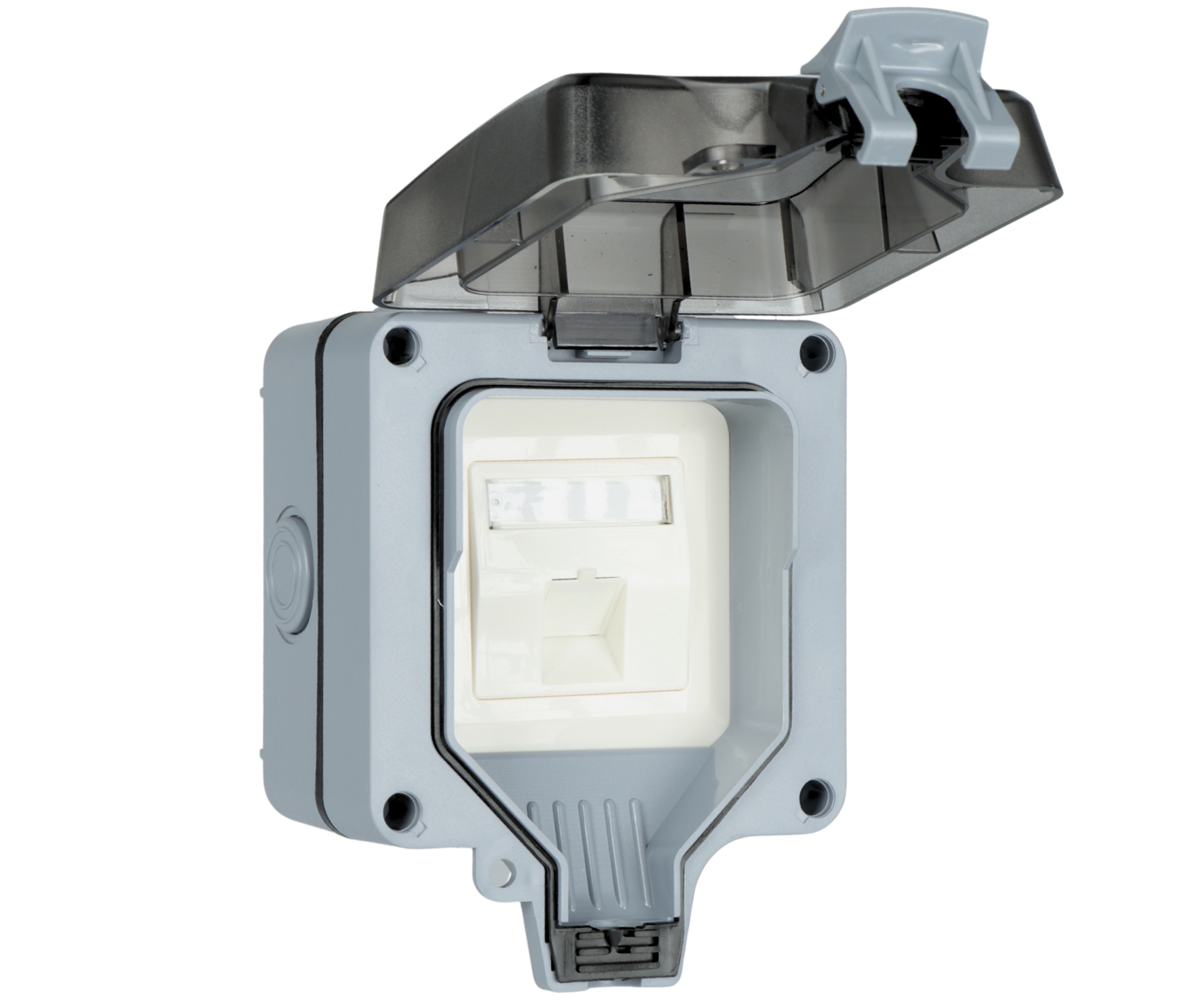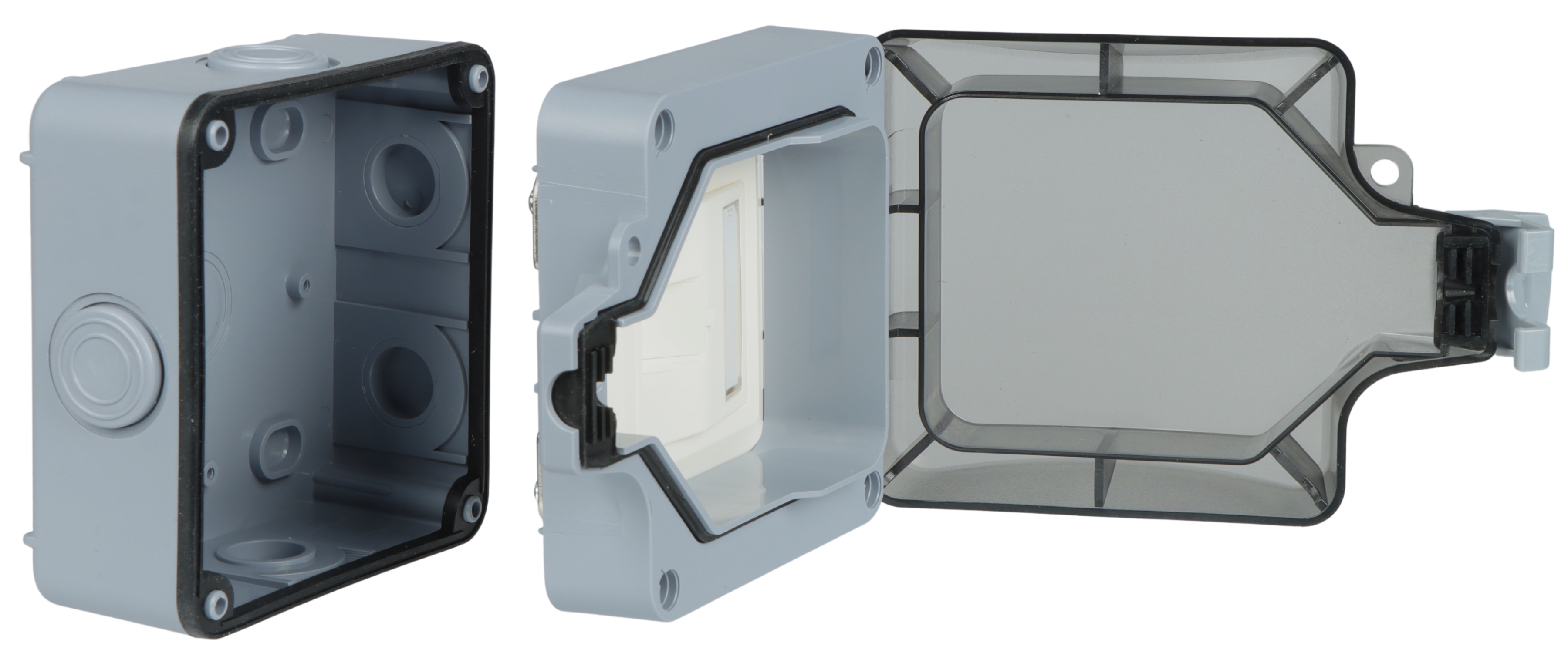 Mount Box for KEYSTONE Connectors; Place for connectors: 1 pcs ; Main features: Resistance to weather conditions ; Color: Gray ; "Index of Protection": IP66 ;