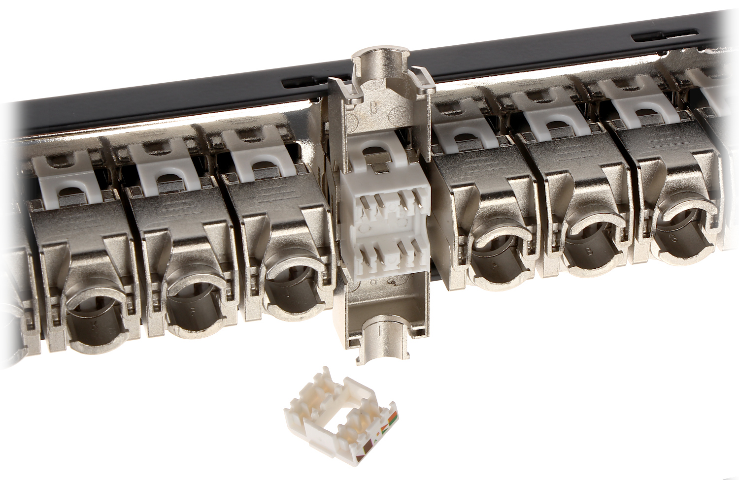 Using the shielded RJ-45 sockets and FTP cable you can ensure shield continuity; Number of ports: 24 pcs ; Color: Black ; Application: RACK 19", 1U ; Main features: It is compatible with Category 6a ;