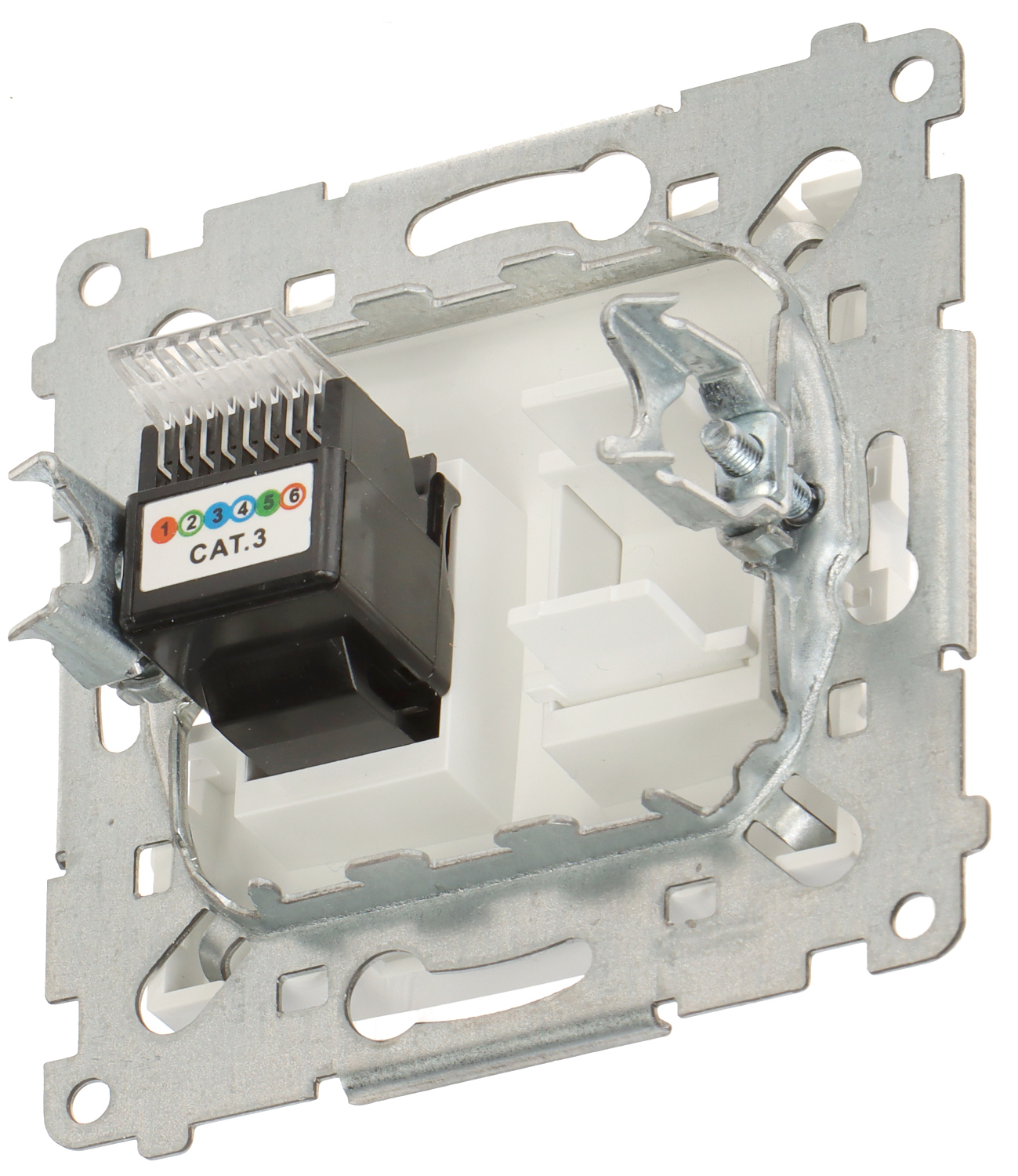 Mount: Flush-mounted, Claw or screw mounting ; Sockets type: 1 pcs RJ-12 - Cat. 3 ; Color: White (RAL 9003) ;