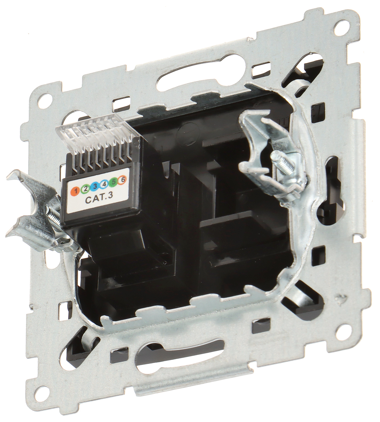 Mount: Flush-mounted, Claw or screw mounting ; Sockets type: 1 pcs RJ-12 - Cat. 3 ; Color: Matt black ;