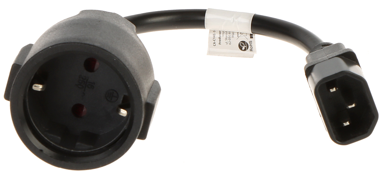 Connector type: Adapter IEC320 C14 plug / Socket CEE 7/3 (Schuko) ; Cable: 3 x 1.5 mm² ; Color: Black ; Main features: Application : UPS, PC, RTV, ;