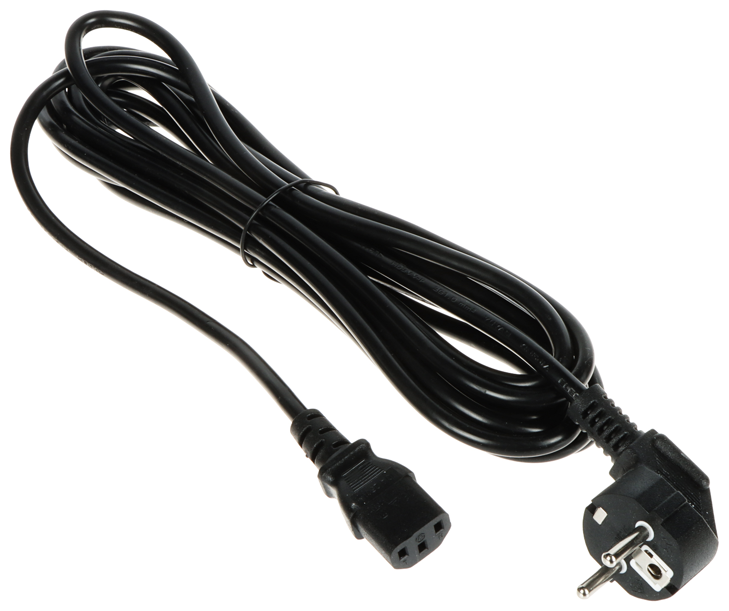 Connector type: Angular plug CEE 7/7 (Schuko) / Plug IEC320 C13 ; Cable: 3 x 1 mm² ; Length of the cable: 5 m ; Color: Black ;