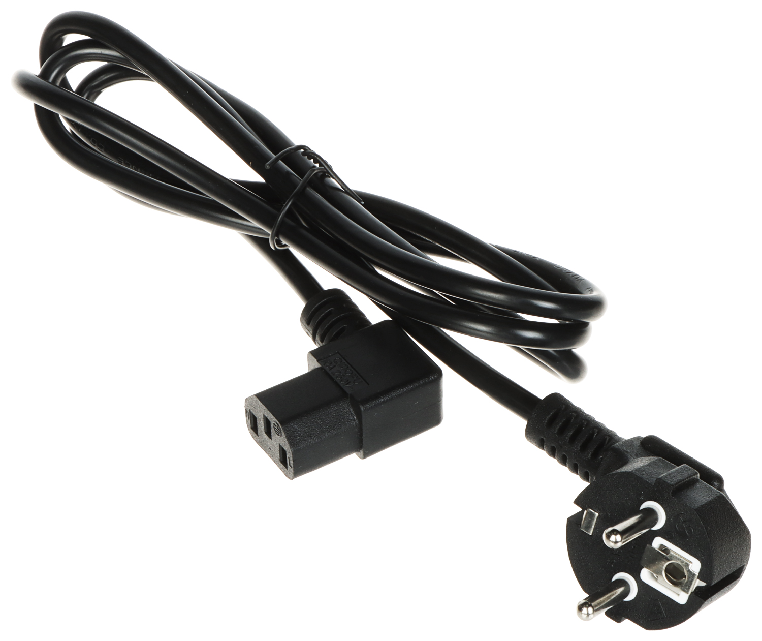 Connector type: Angular plug CEE 7/7 (Schuko) / Angular plug IEC320 C13 ; Cable: 3 x 0.75 mm² ; Length of the cable: 1.5 m ; Color: Black ;