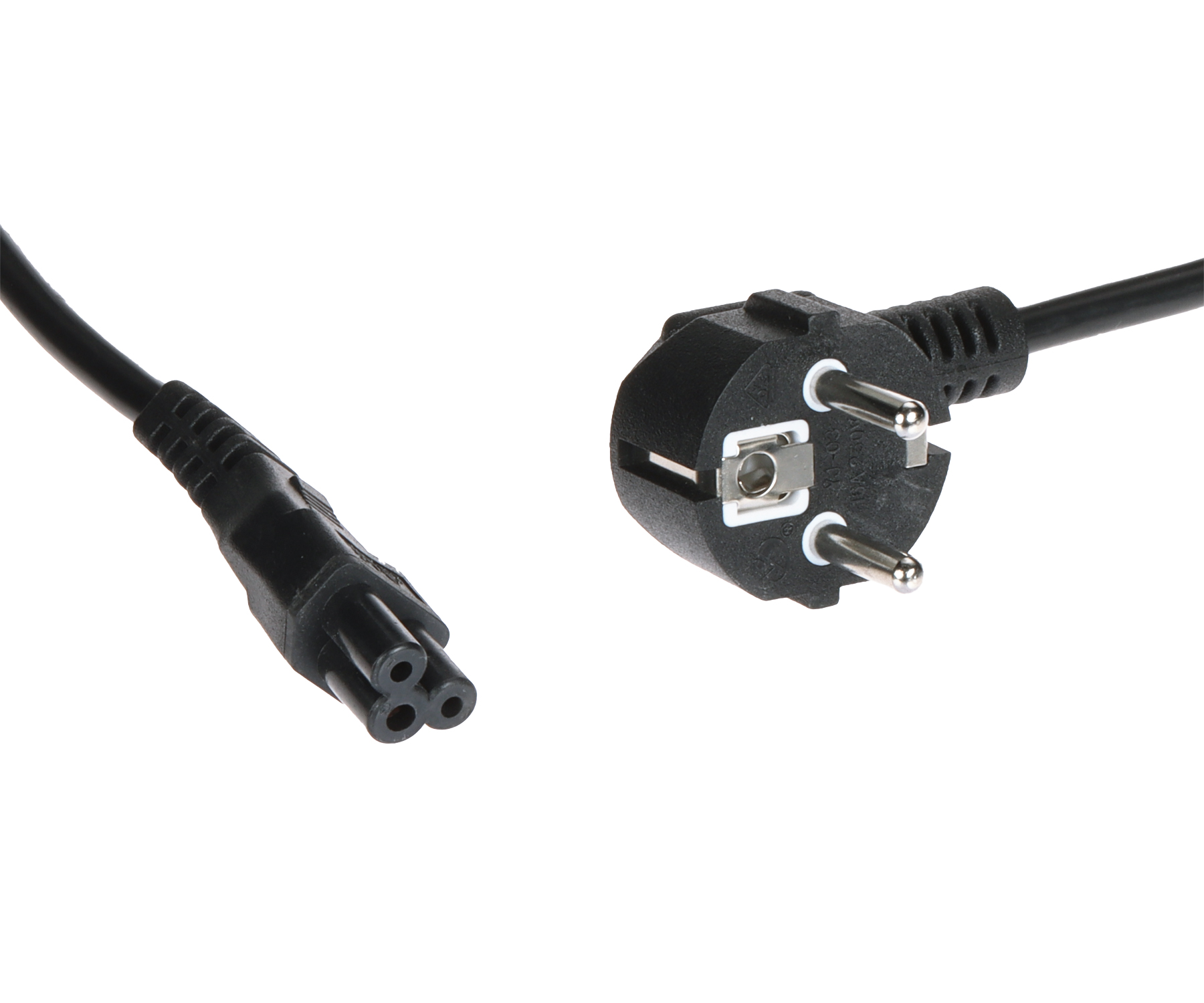 Connector type: Angular plug CEE 7/7 / Plug IEC320 C5 ; Cable: 3 x 0.75 mm² ; Length of the cable: 1.2 m ; Color: Black ;
