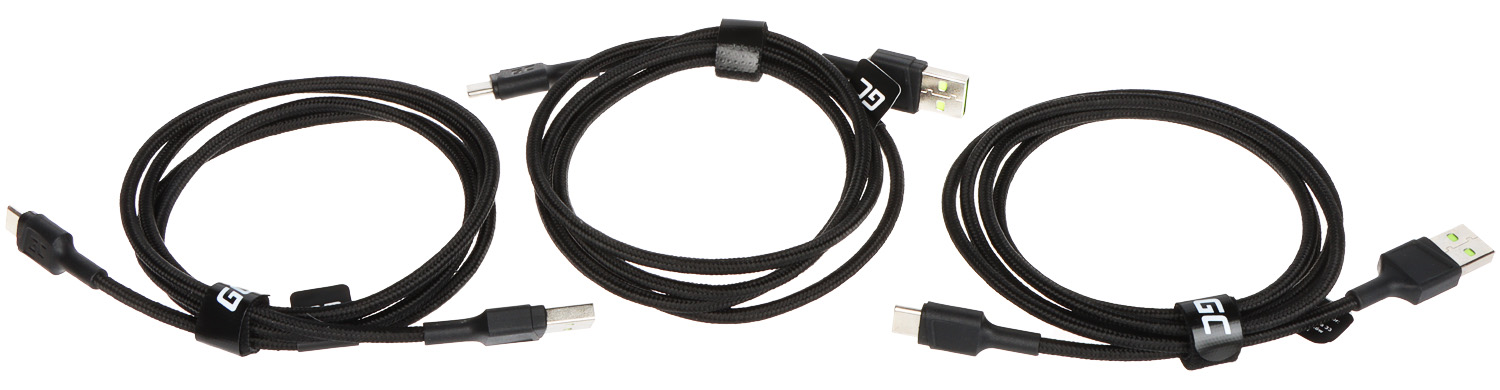 The high quality cables are suitable for fast data synchronization (up to 480 Mbps) and charging compatible with the standards: QC3.0, GC Ultra Charge, Samsung AFC, Huawei FCP, Apple 2.4A, Mediatek Pump Express 1.1/2.0, USB DCP; Cable: USB-C plug / USB-A plug ; USB standard: 2.0 ; Main features: Illuminated USB-C plug, Double shielding of the cable, Kevlar fiber reinforcement ;