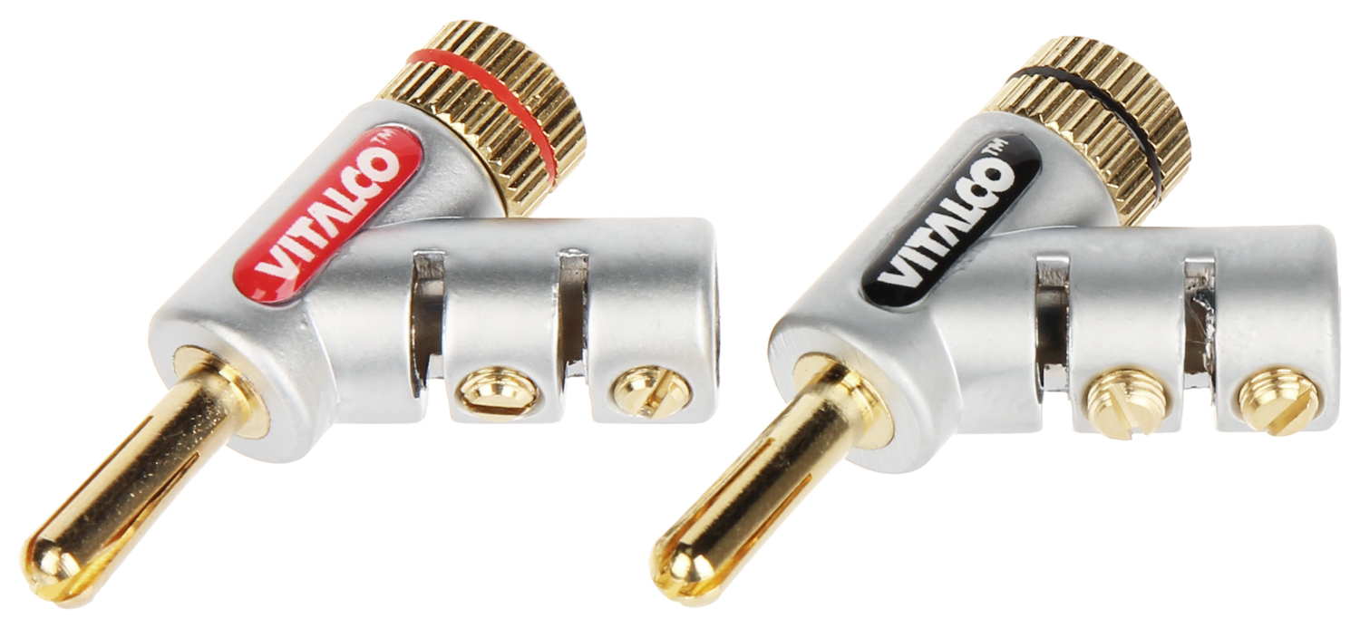 PAIR OF ANGULAR BANANA-TYPE PLUGS BAN-PLUG-HQ/KAT RED + BLACK VITALCO