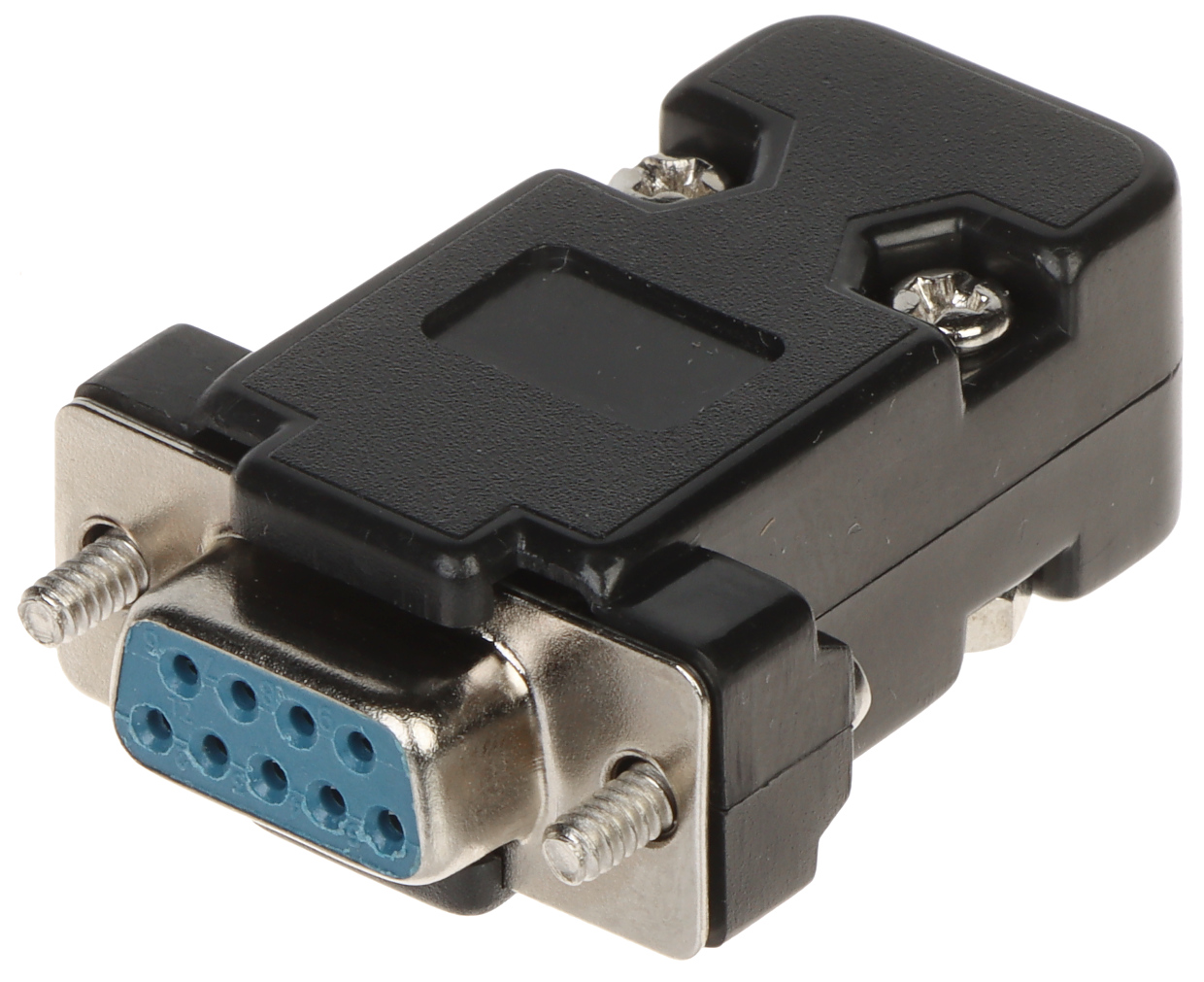 The D-Sub DB9 (DE-9) connector in a durable screwed plastic housing is designed for cable mounting;