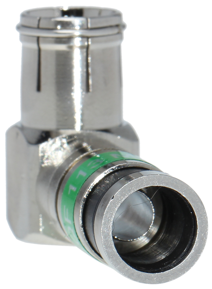 Connector type: "F" Quick plug, Angular plug ; Attachment of connector elements: Compression mounting ; Application: Coaxial cable ; Cable diameter: max. 8.5 mm ;
