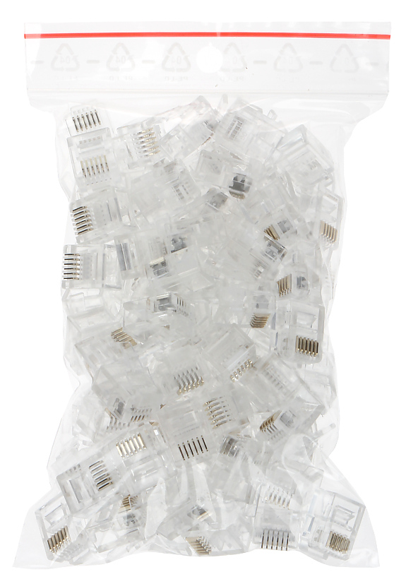In package: 100 pcs The price for package ; Connector type: RJ12 - Plug, 6 pin ; Application: Telephone cable ;