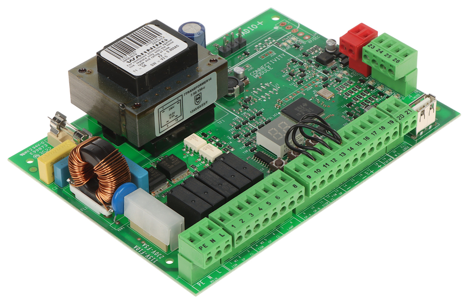 Gate operator type: Mechanical ; Maximum expressed force: 3000 N ; Maximum length of the gate: 3 m (single leaf) ; Linear speed: 16 mm/s (max) ; Wireless transmission range: ≤ 50 m (in open area) ; Main features: Self-locking operator ;