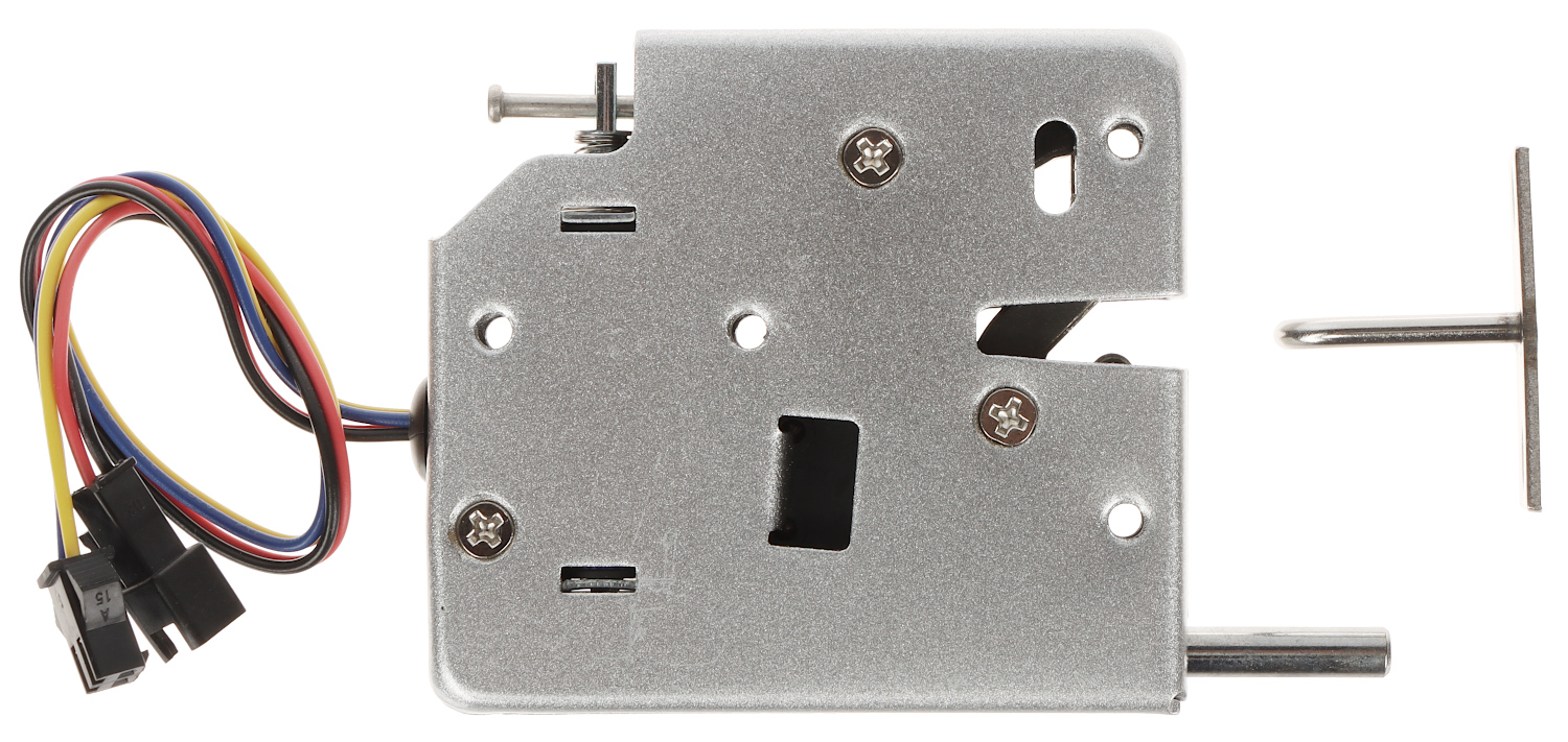 Rated voltage: 12 V DC ; Application: right-side door / left-side door ; Main features: Built-in spring lever, Maximum diameter of the lock latch : 3 mm, Color : Silver ;