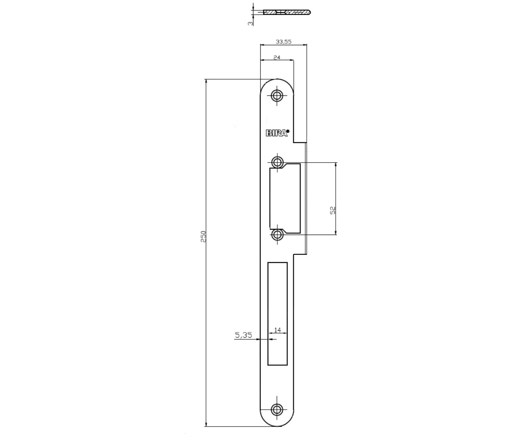 Dimensions: 250  x 33.55  x 3 mm